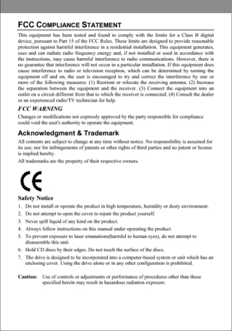 LITE ON TECHNOLOGY RW1005 CD-RW Drive User Manual LITE ON IT Corp