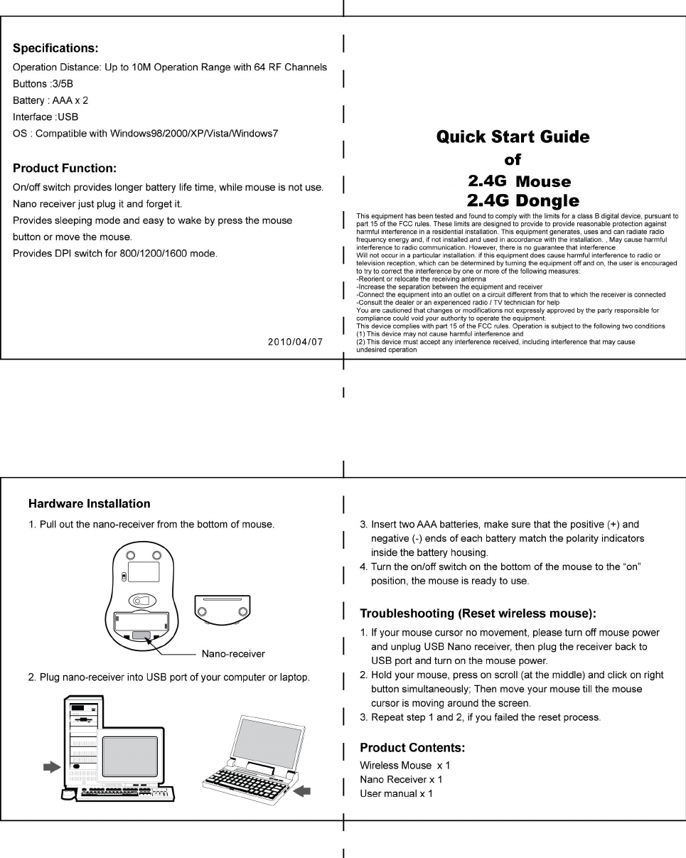 LITTLE WING TECHNOLOGIES X002 2.4G MOUSE User Manual