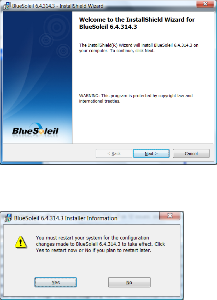 Uninstall any previous versions of BlueSoleil installed on your computer before installing this