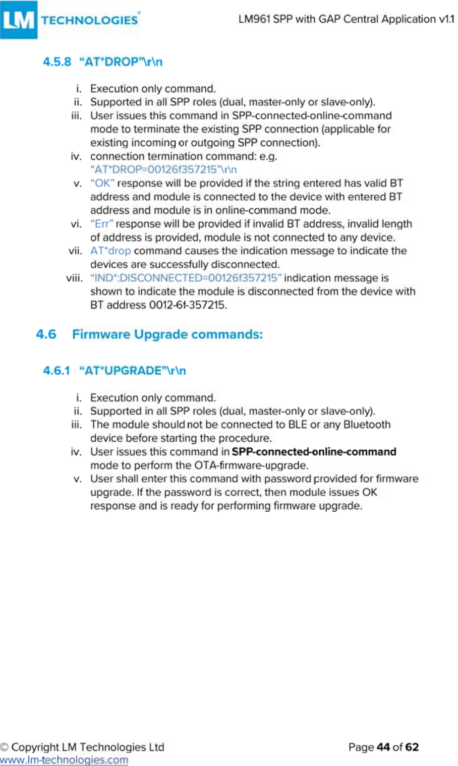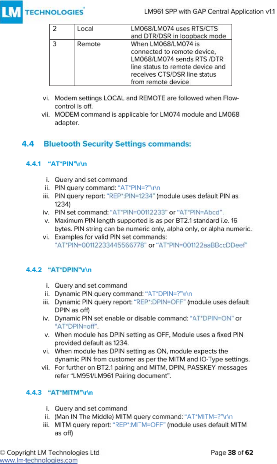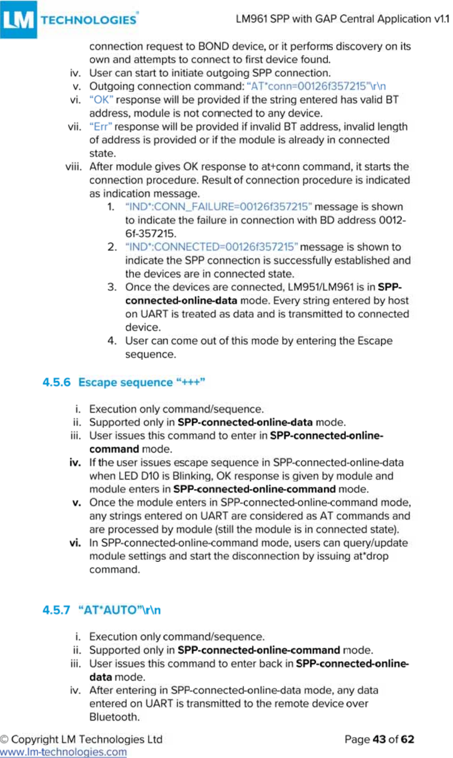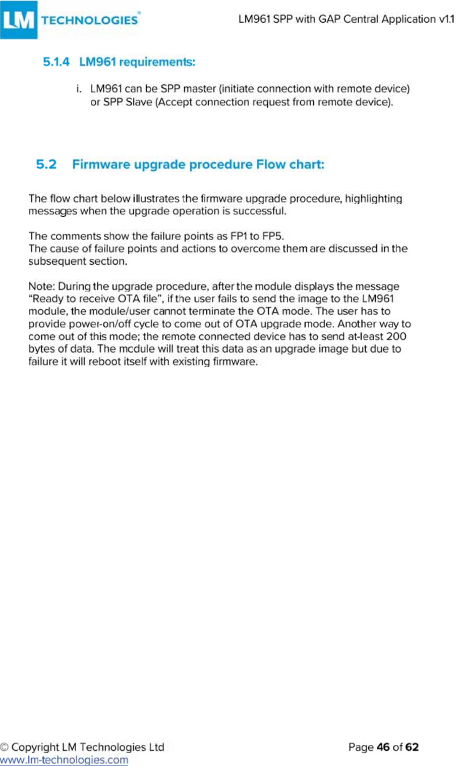 LM Technologies LM961 LM961 Bluetooth v4.1 Dual Mode Module User Manual
