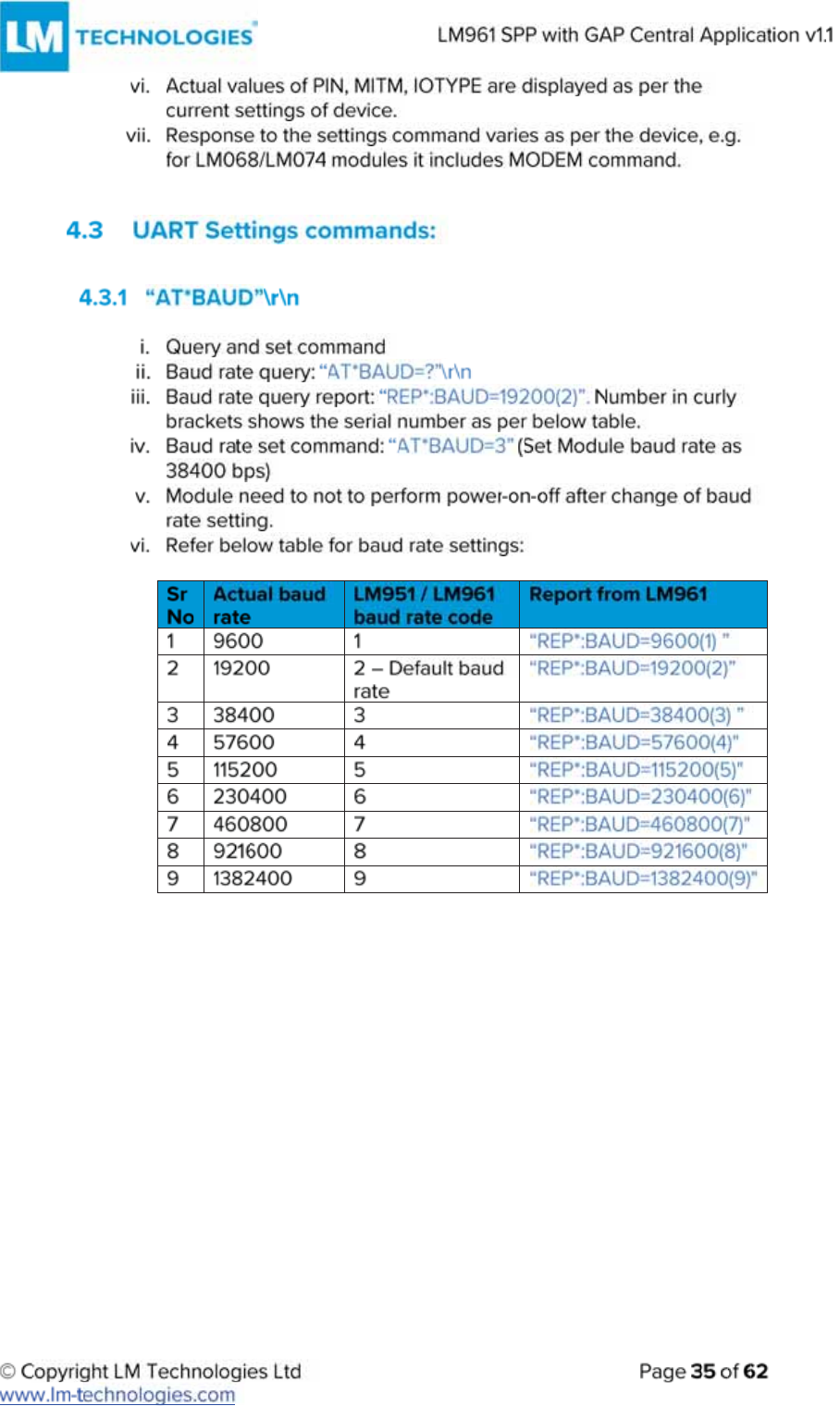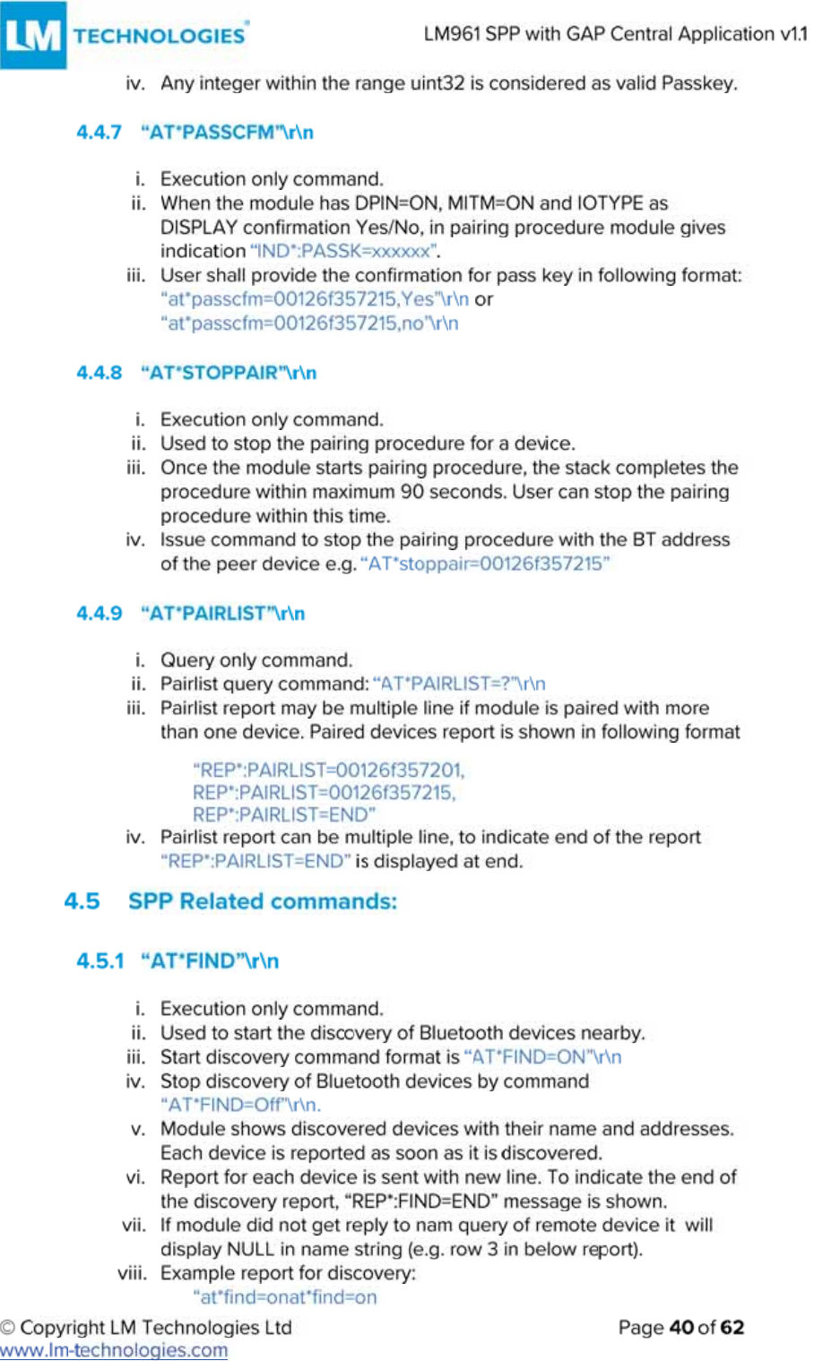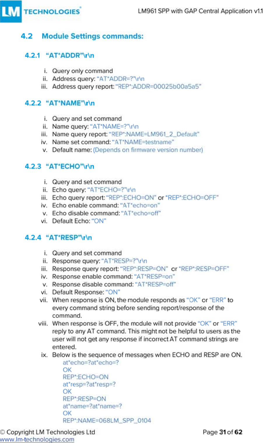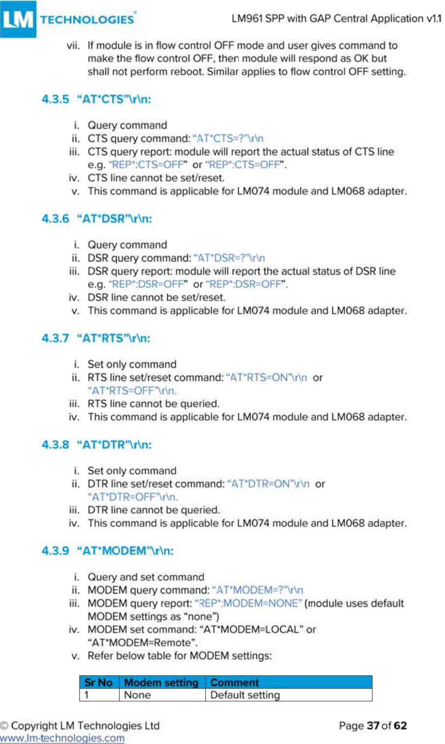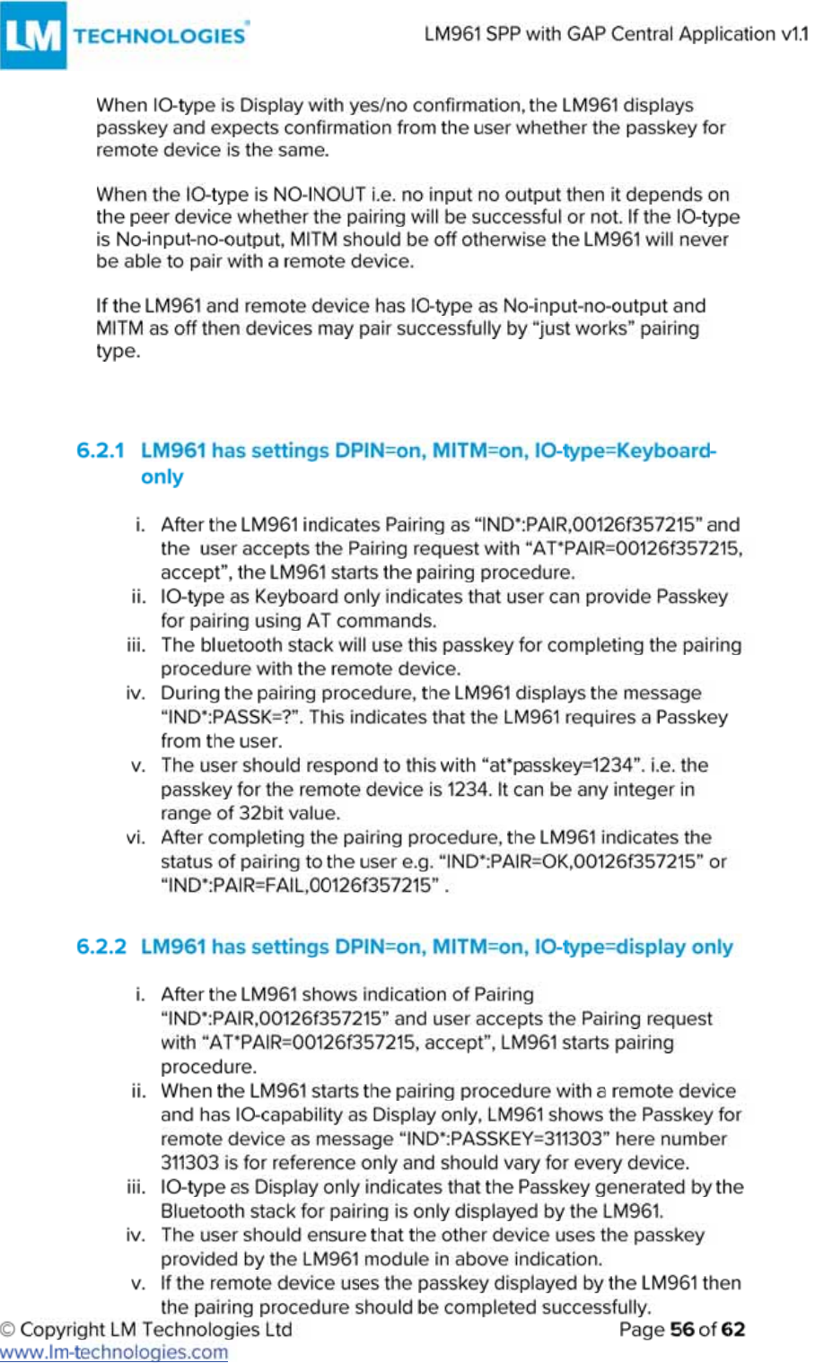 LM Technologies LM961 LM961 Bluetooth v4.1 Dual Mode Module User Manual