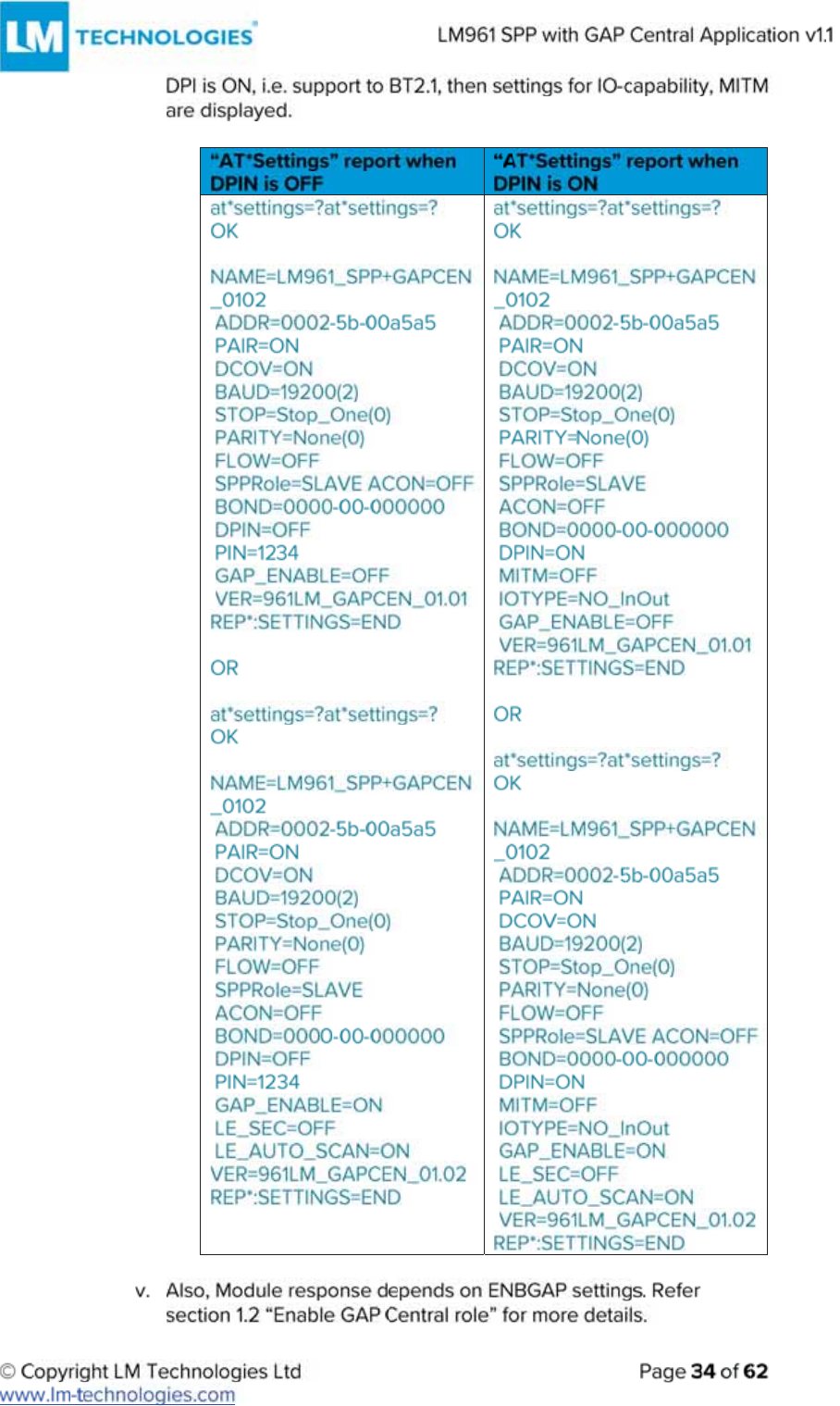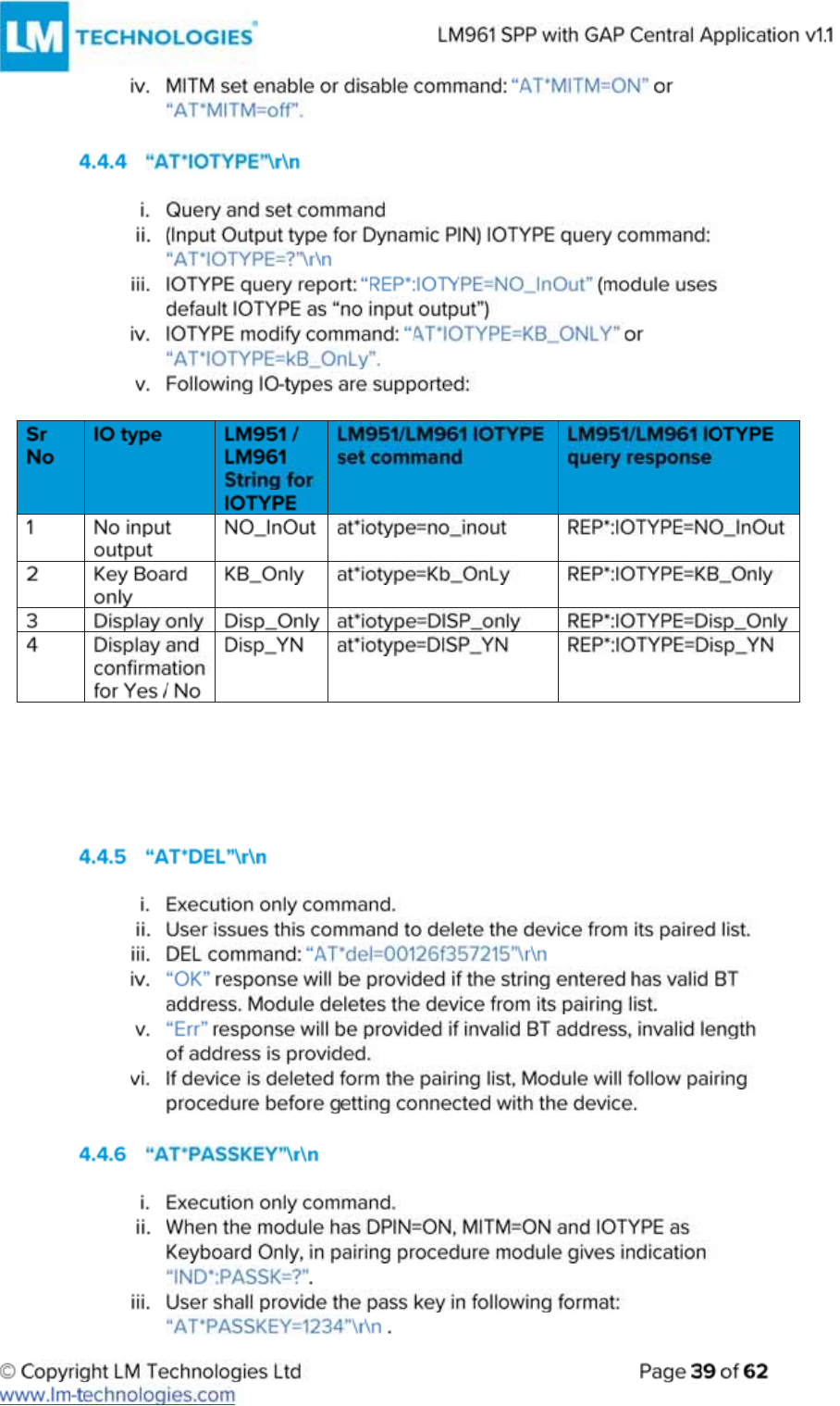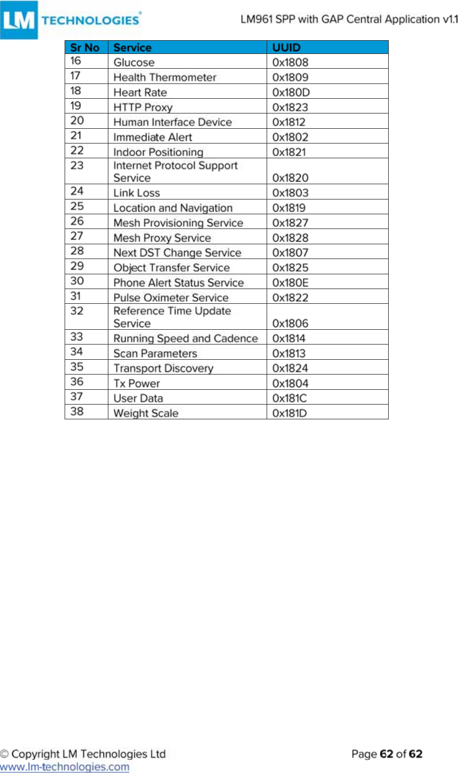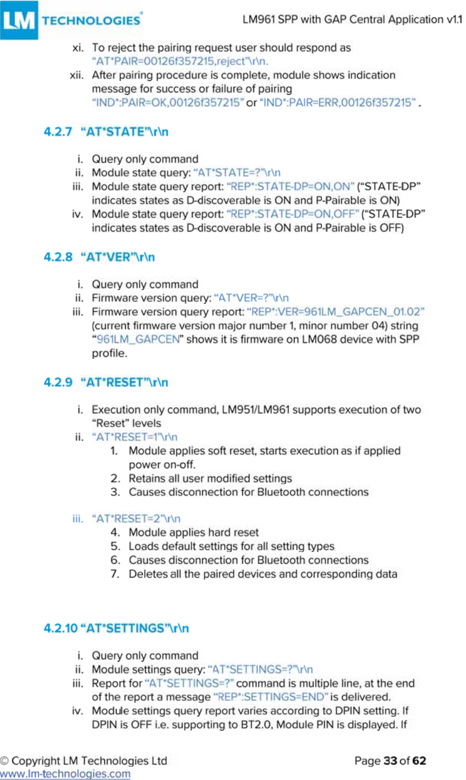 LM Technologies LM961 LM961 Bluetooth v4.1 Dual Mode Module User Manual