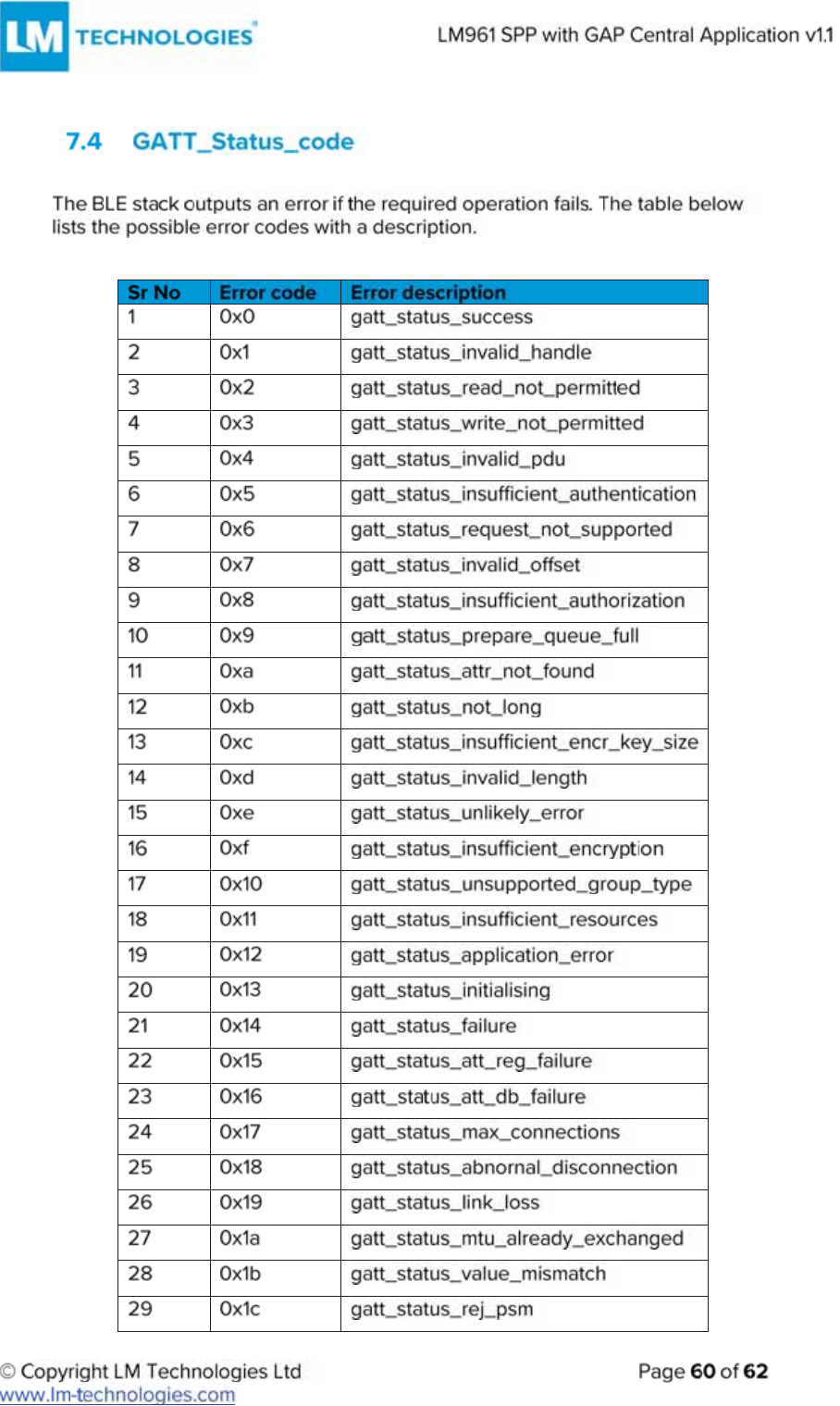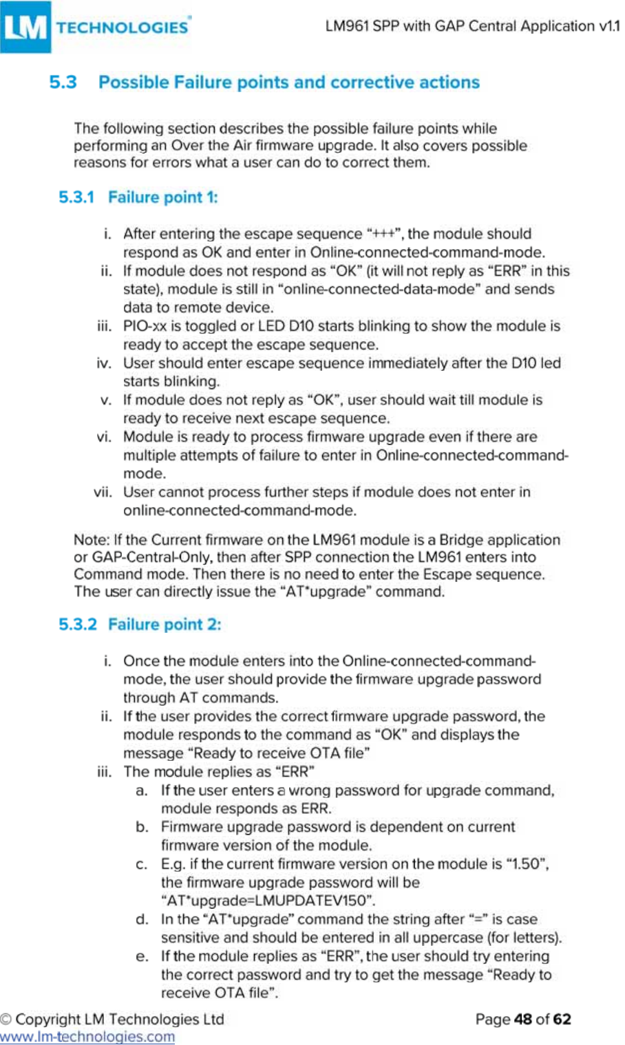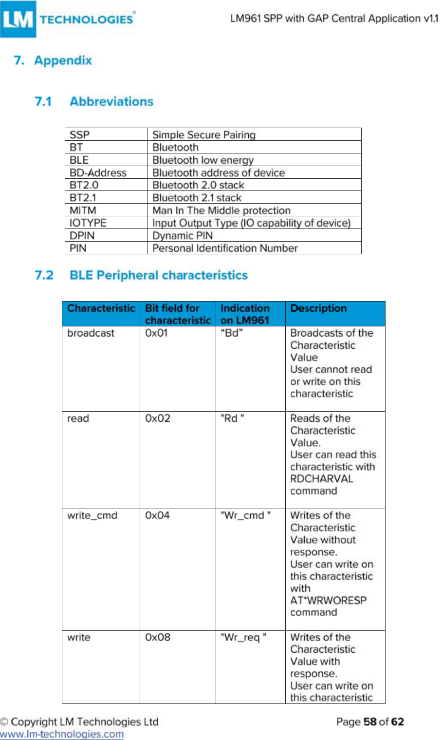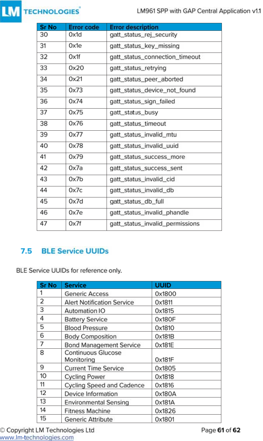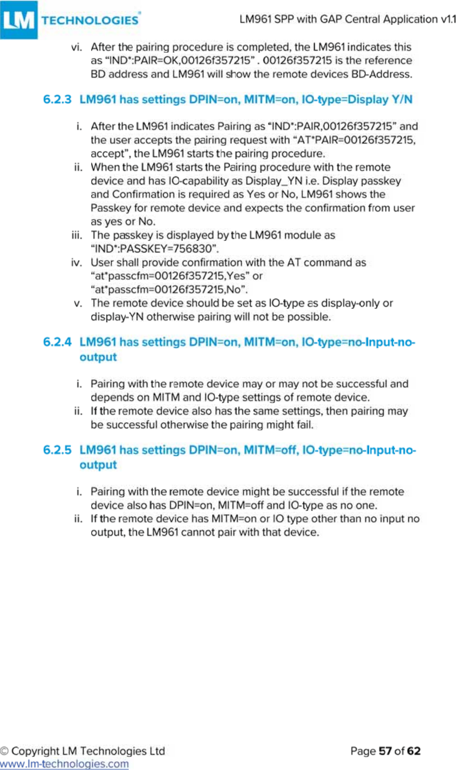 LM Technologies LM961 LM961 Bluetooth v4.1 Dual Mode Module User Manual