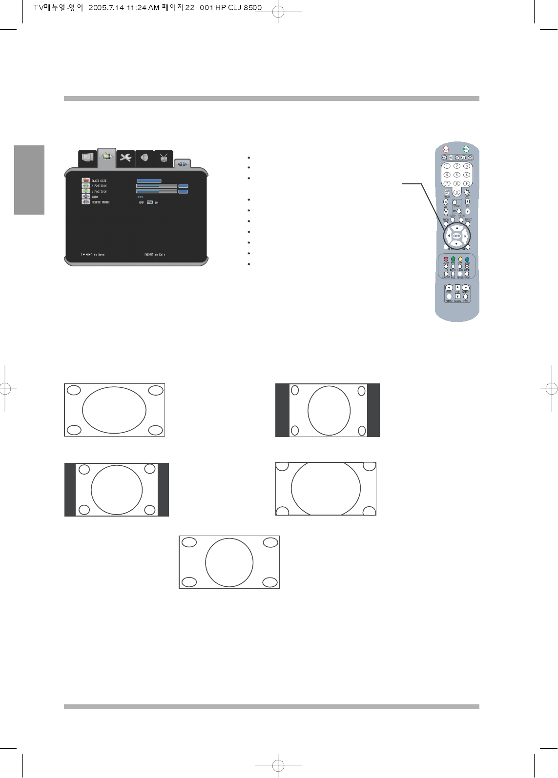 Here the adjustment can be made to the displays horizontal and vertical position and image size if the display