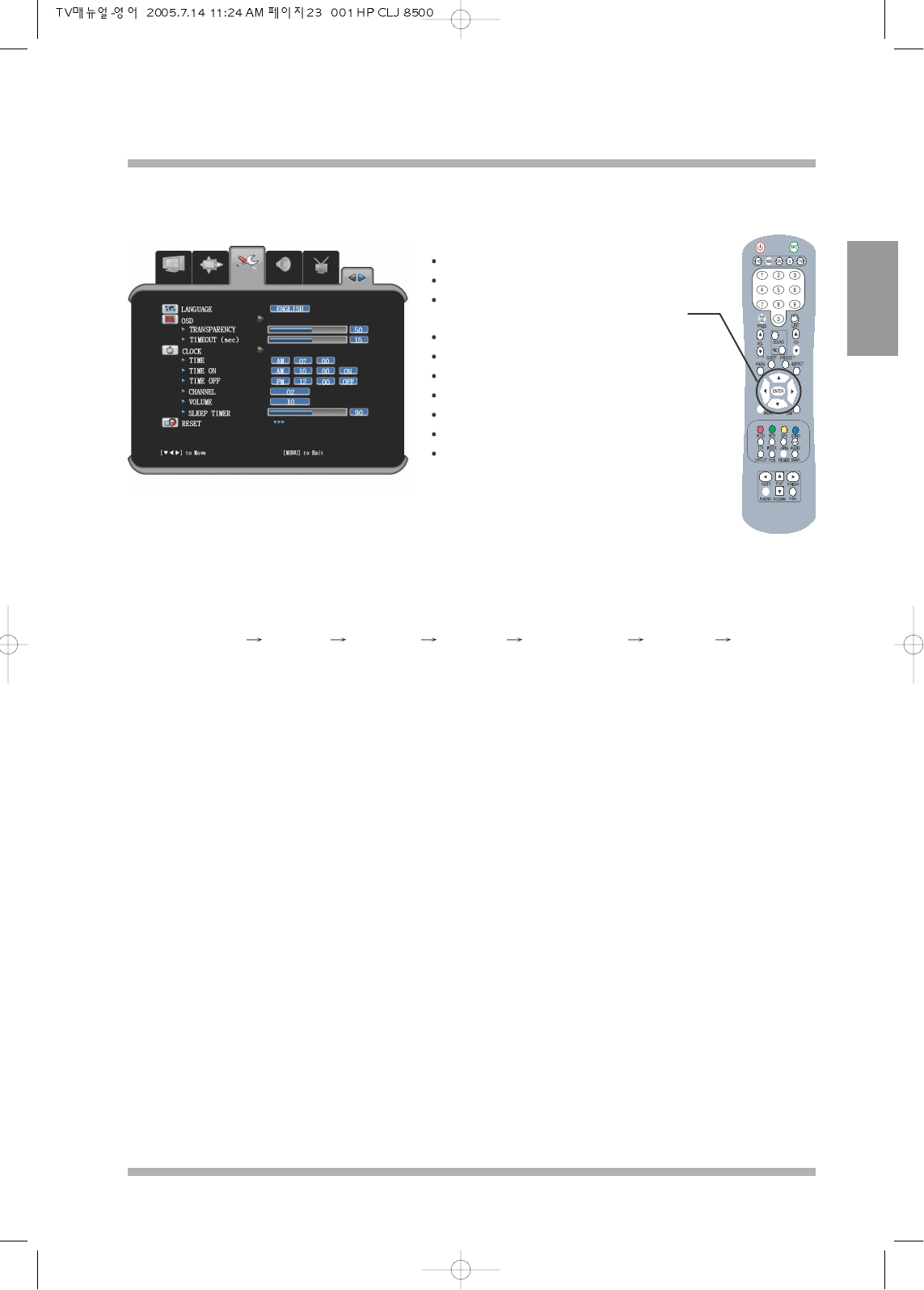 (Hot key is provided in the remote control for quick and convenient setting.)