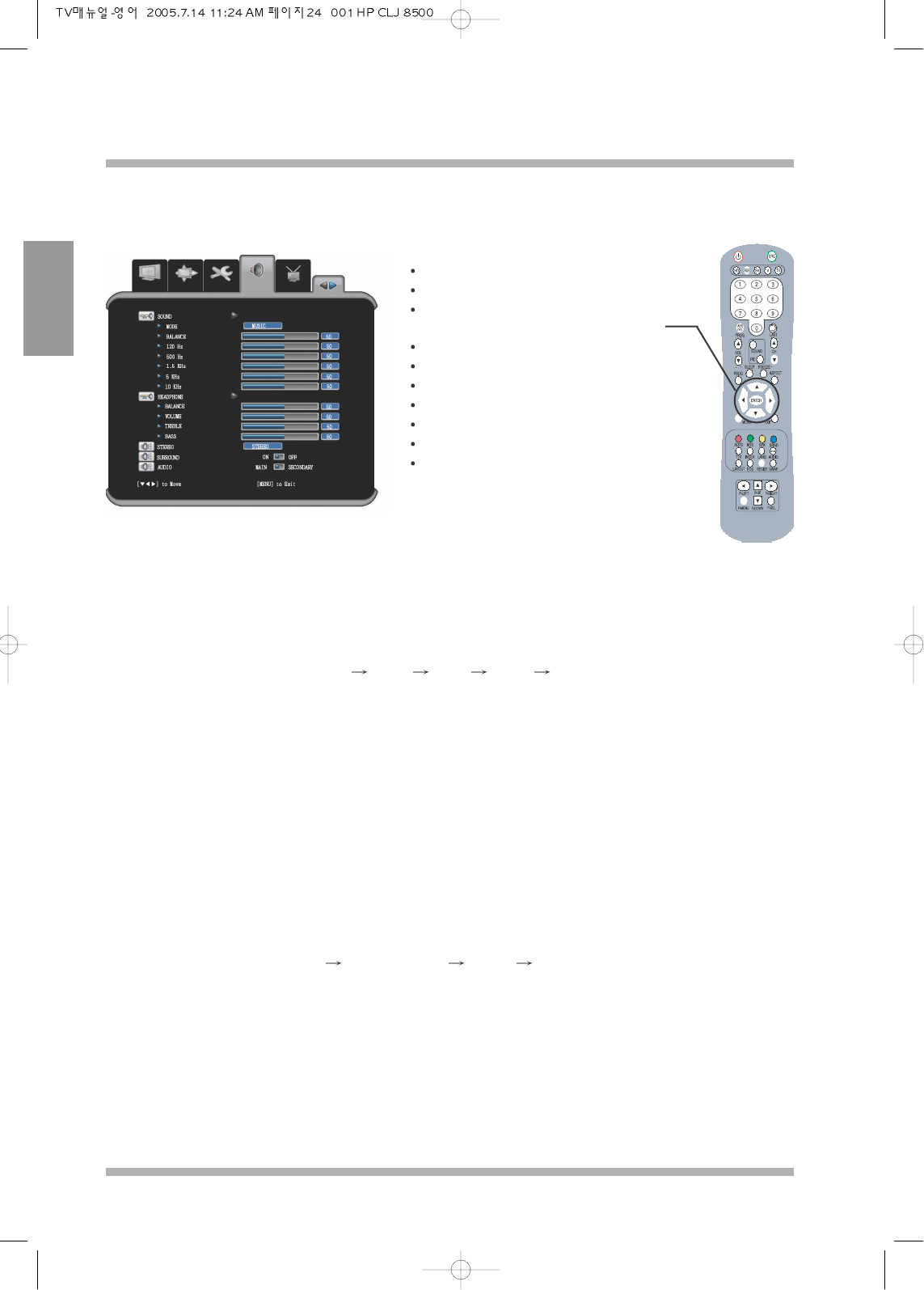 Balance : This is to change the sound output level for left and right.