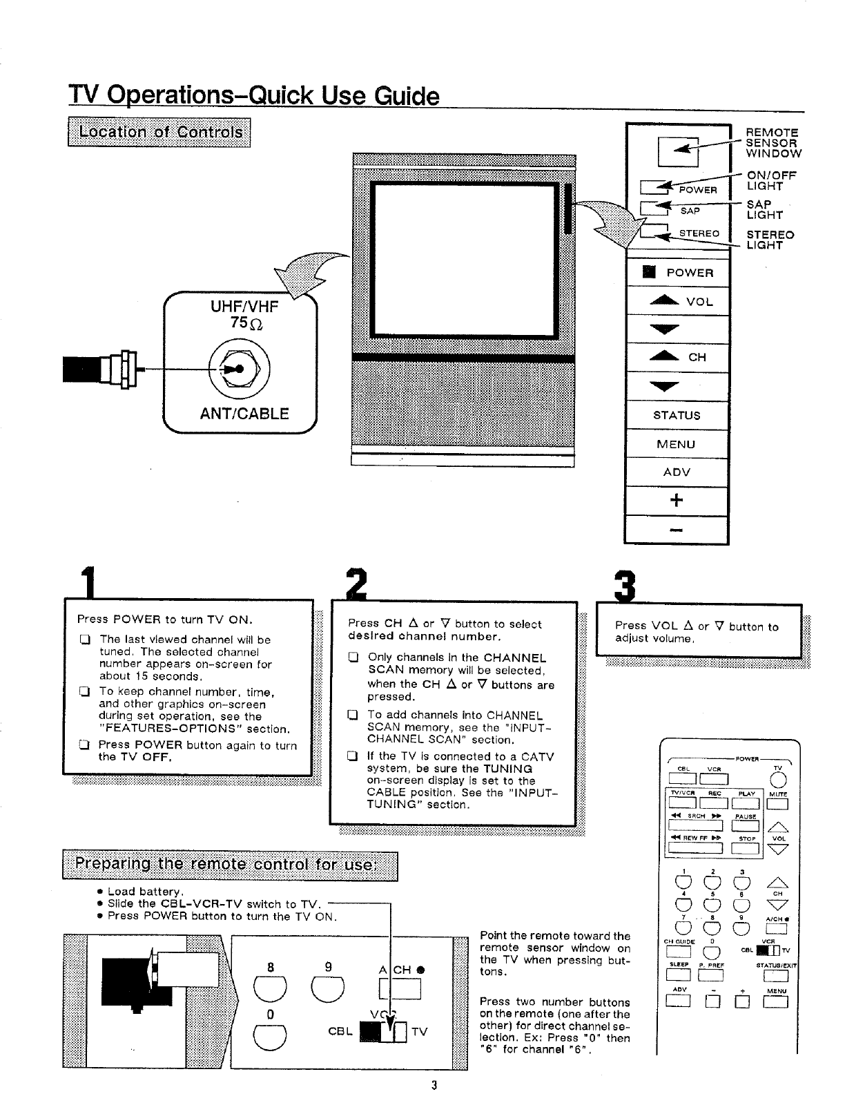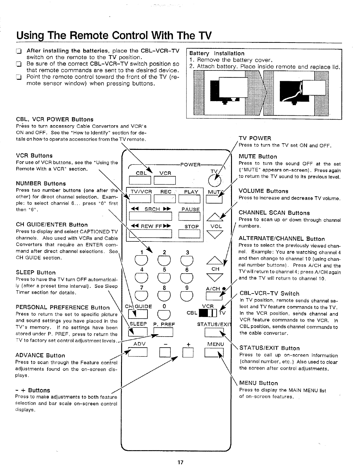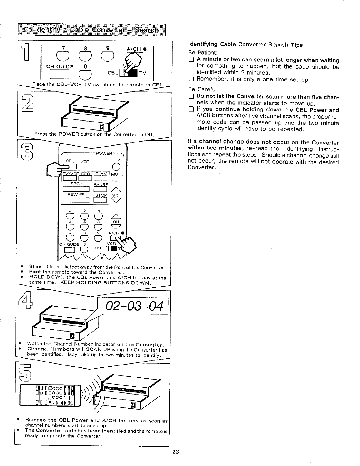 [] Check that CBL-VCR-TV switch (on the remote) is in correct position for selecting