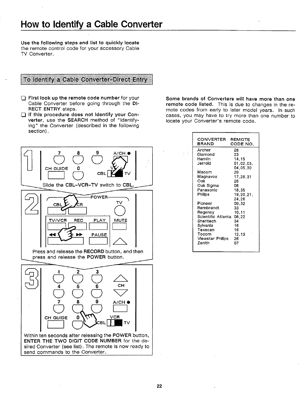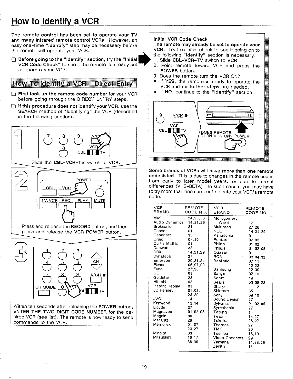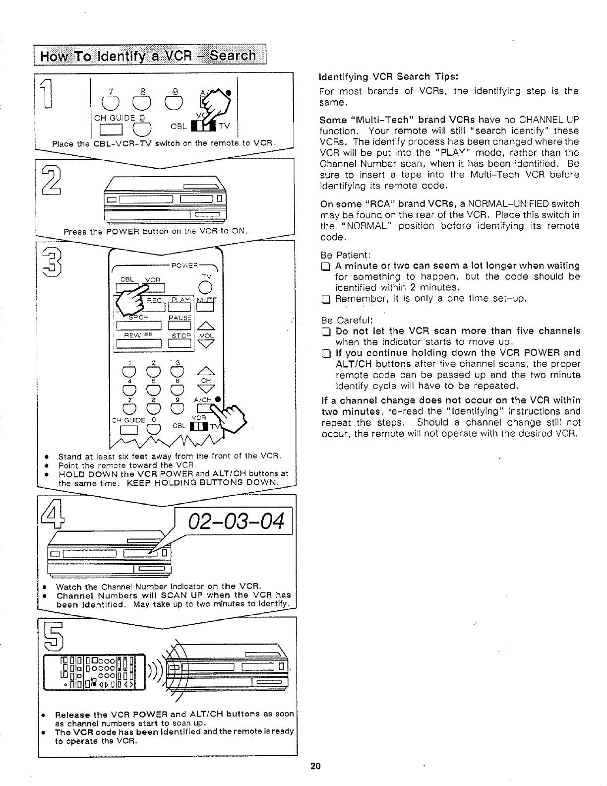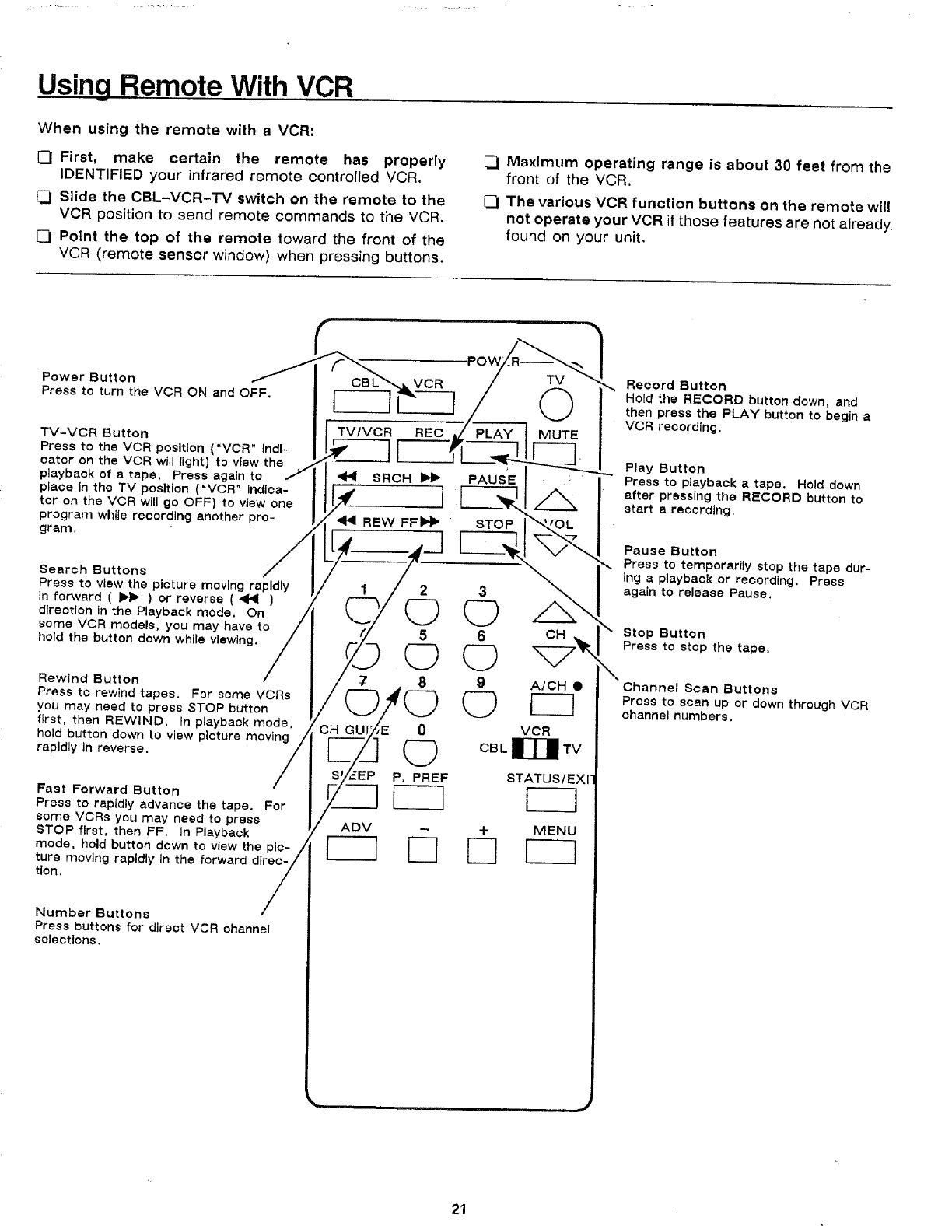 [] Check the CBL-TV-VCR switch on the remote for correct position,