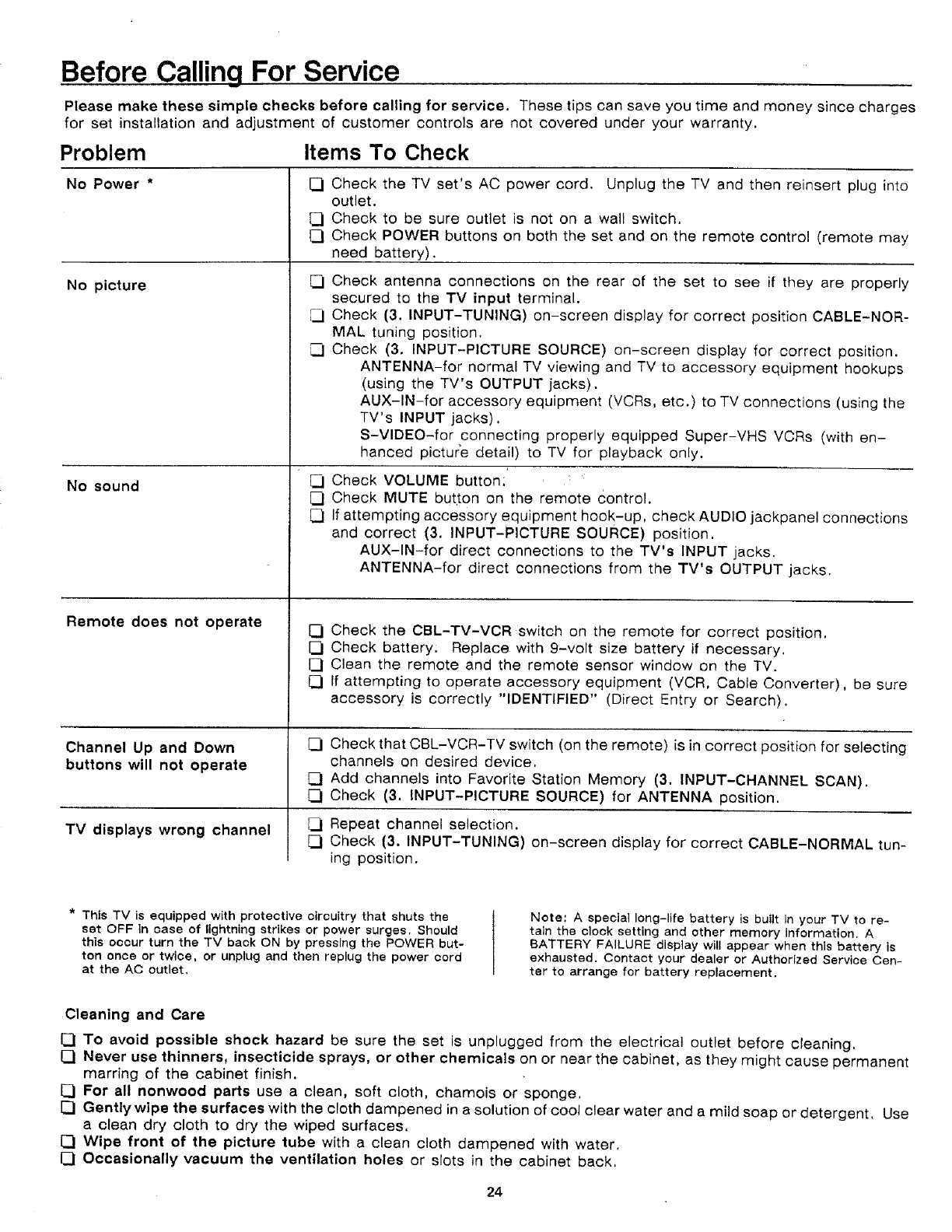 IZI To avoid possible shock hazard be sure the set is unplugged from the electrical outlet before cleaning.
