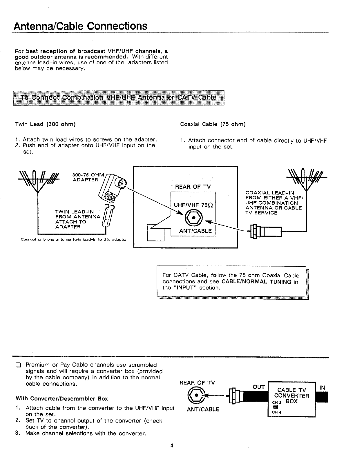 ANTENNA-for normal TV viewing and TV to accessory equipment hookups