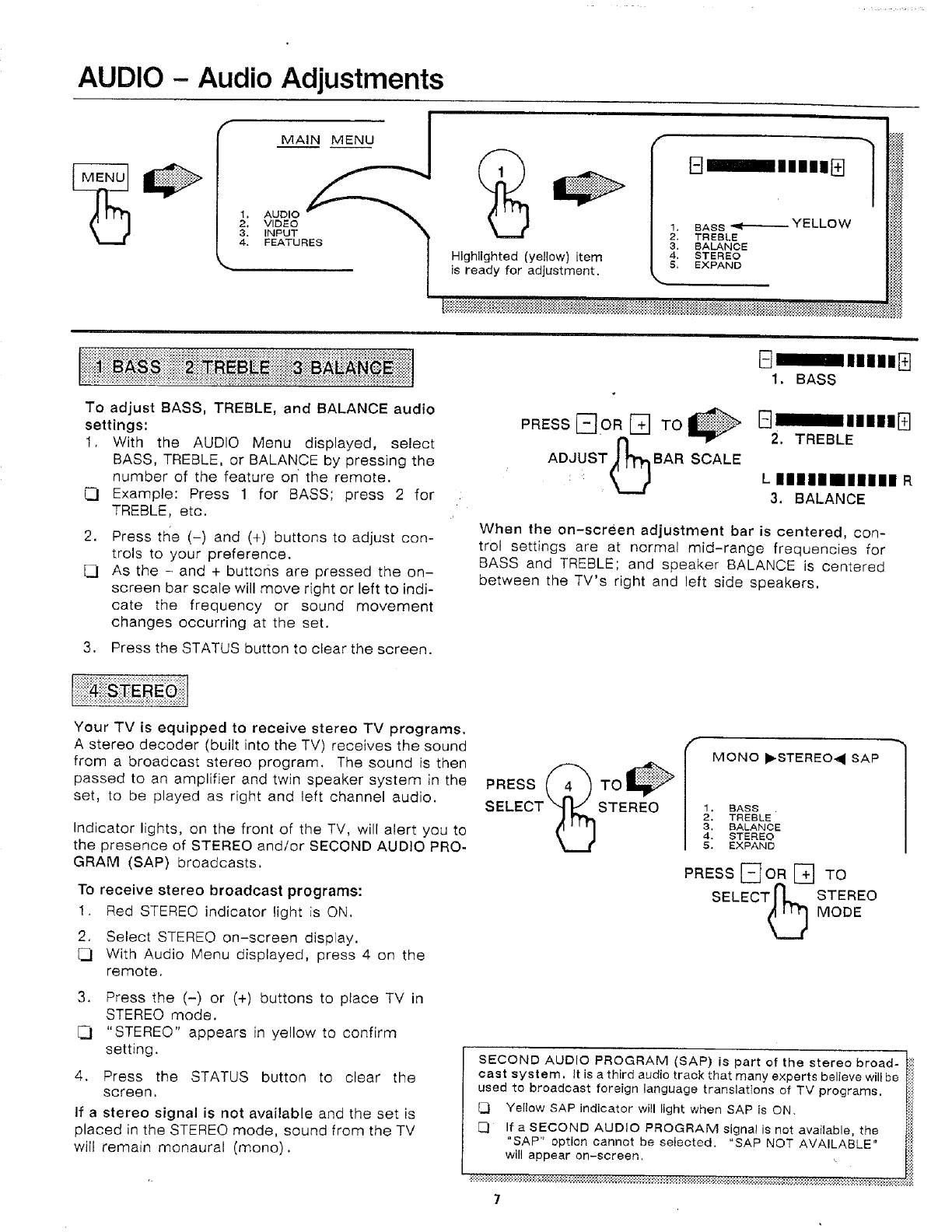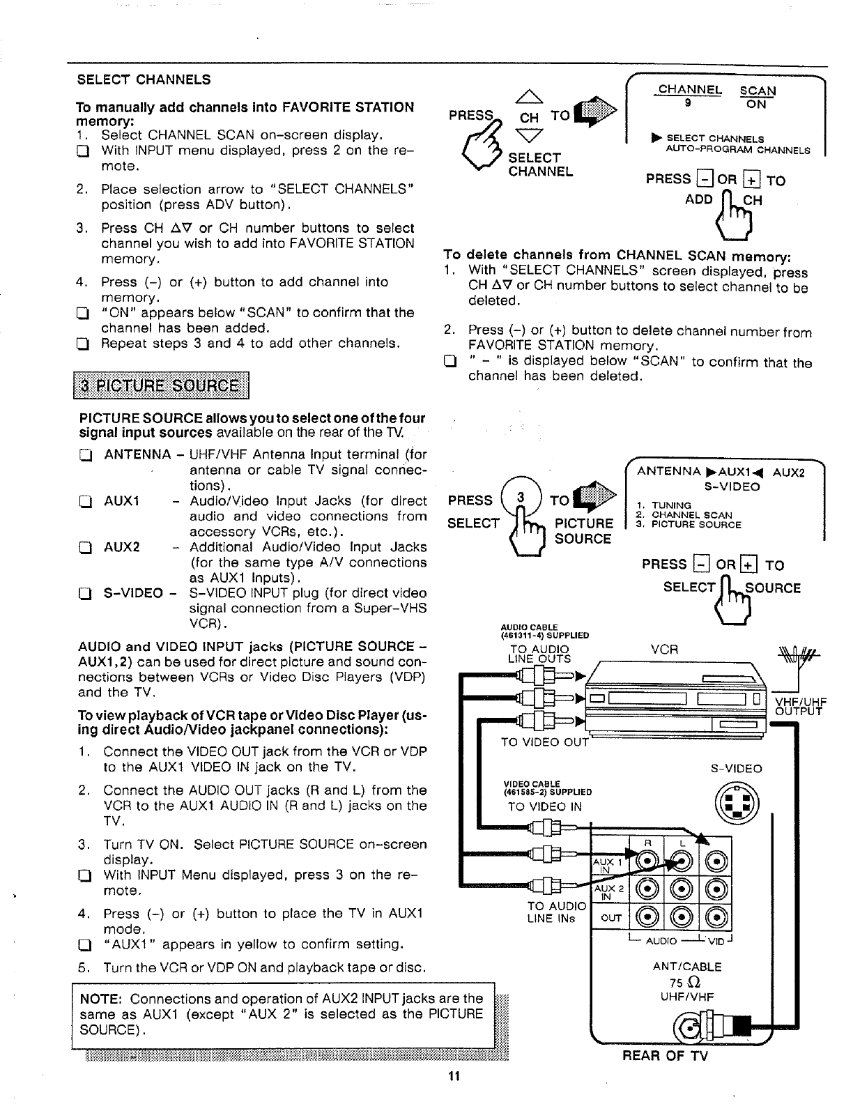 AUX-IN-for accessory equipment (VCRs, etc.) to TV connections (using the