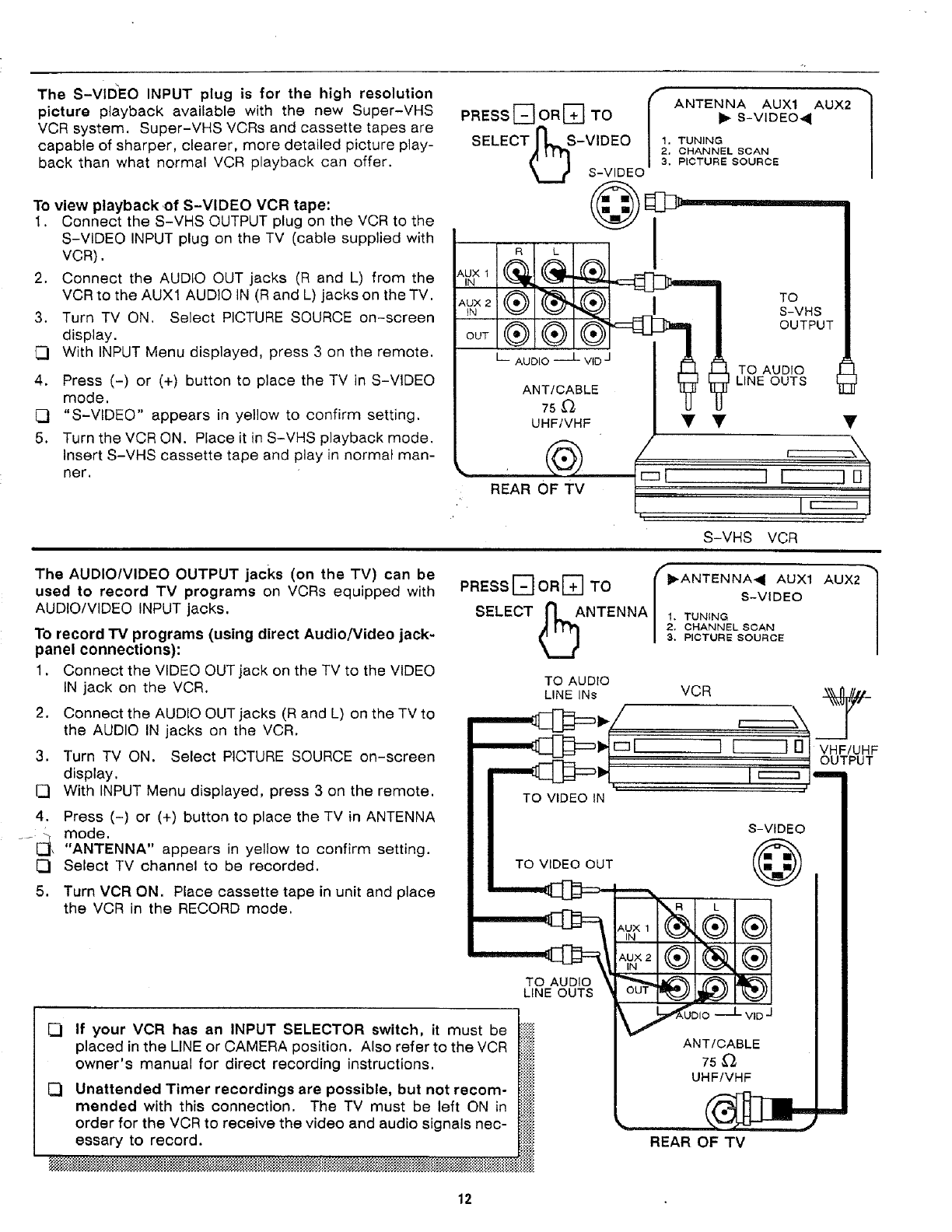 S-VIDEO-for connecting properly equipped Super-VHS VCRs (with en-