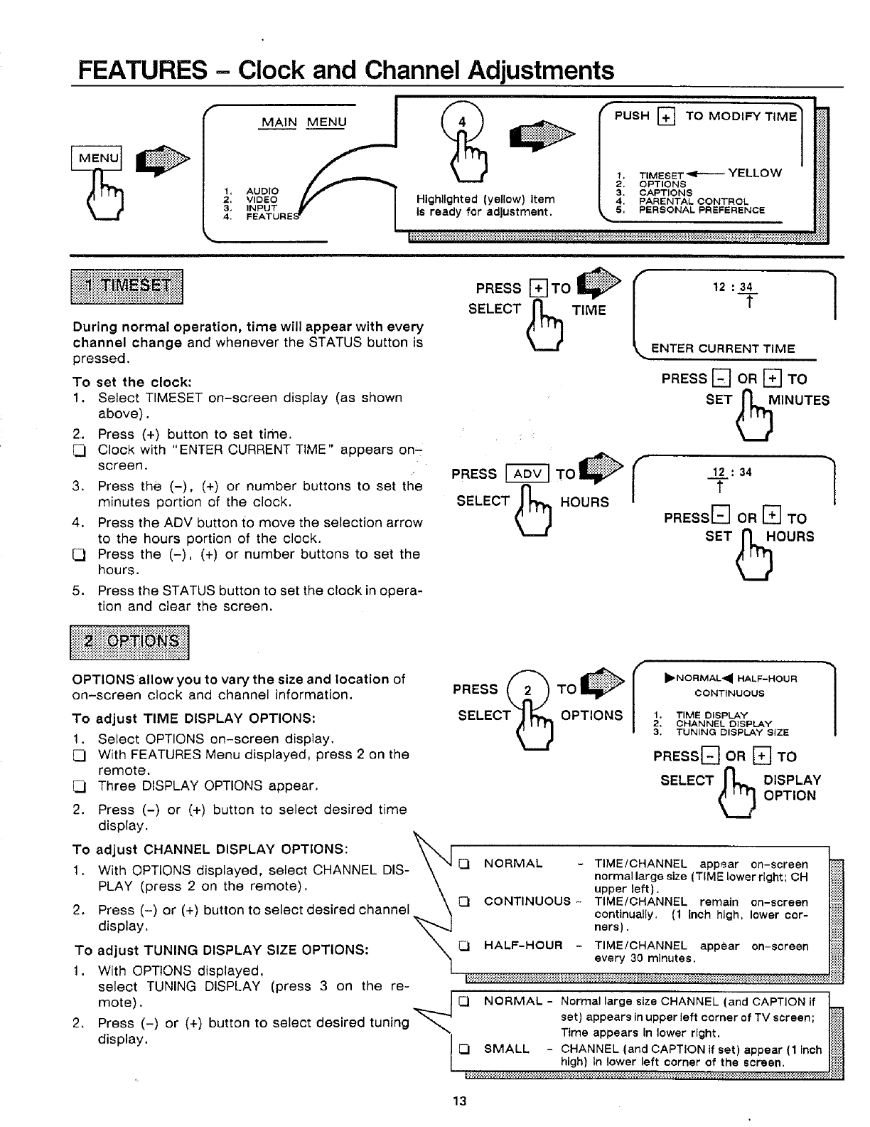 FEATURES - Clock and Channel Adjustments .. 13-16