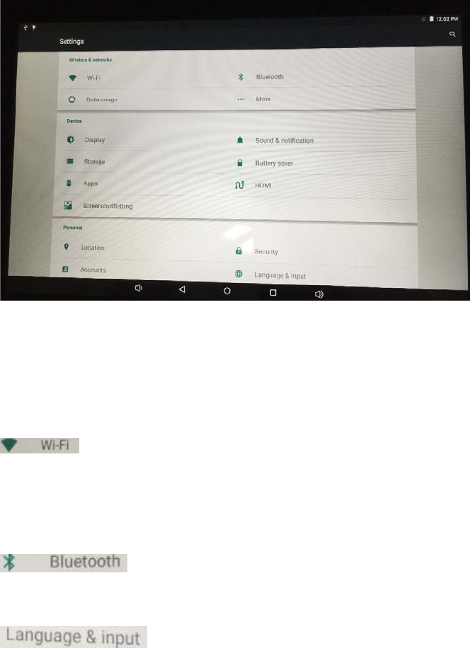 Battery, App, Security, Date & Time, Language & Input, Accounts, about tablet