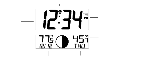 segments will light up briefly before displaying the information for time, date, indoor and outdoor