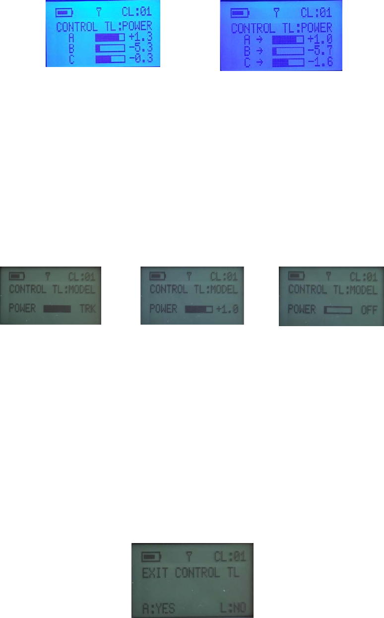 To change power on the CONTROL TL: POWER screen press the ZONE key for the