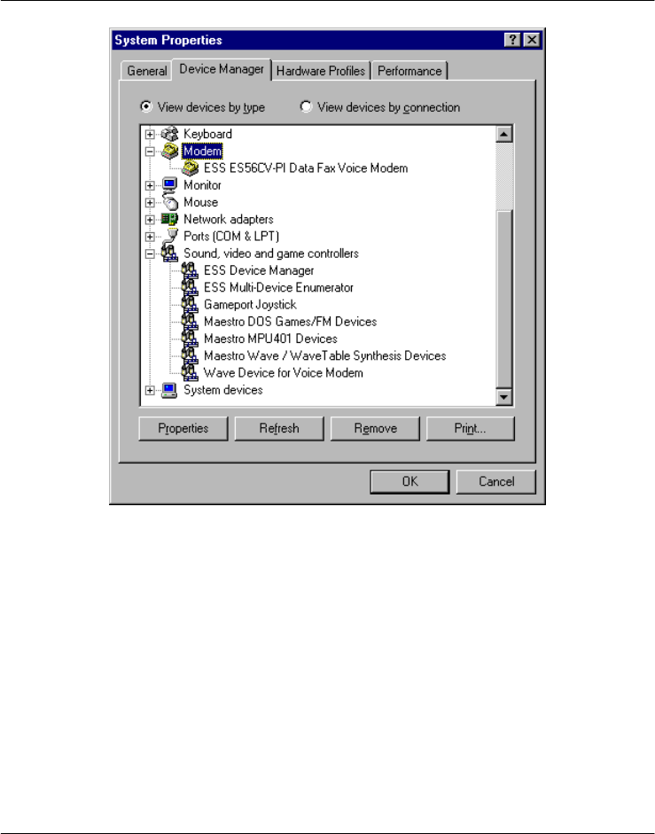 push button. Windowsâ 95 will enter the Setup program “ESS Maestro-2E Modem