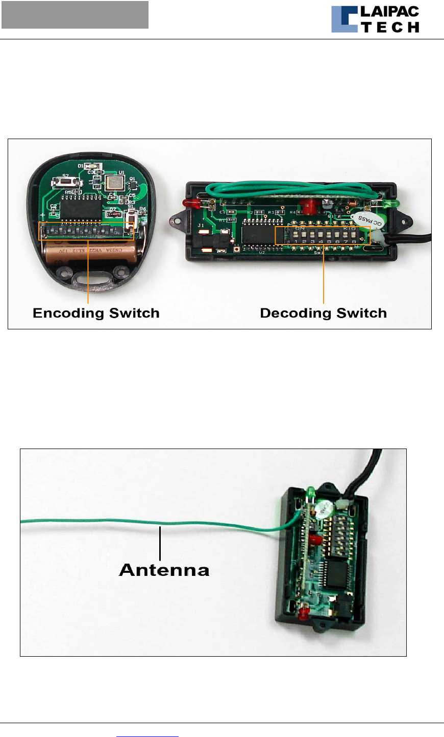 inside the remote controller; the other is inside the receiver. The two switches can be set