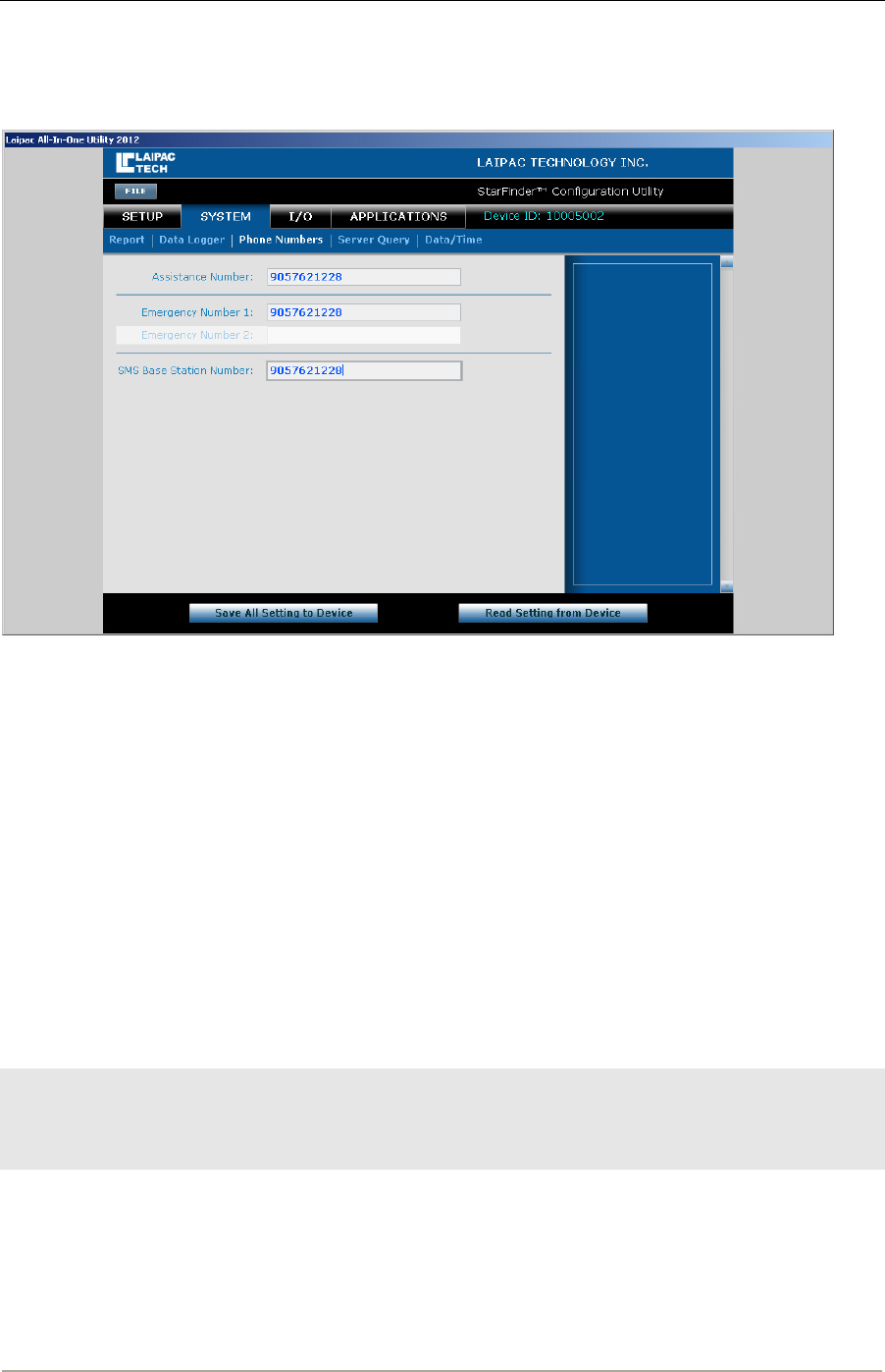 SMS Base Station Number No Yes Yes