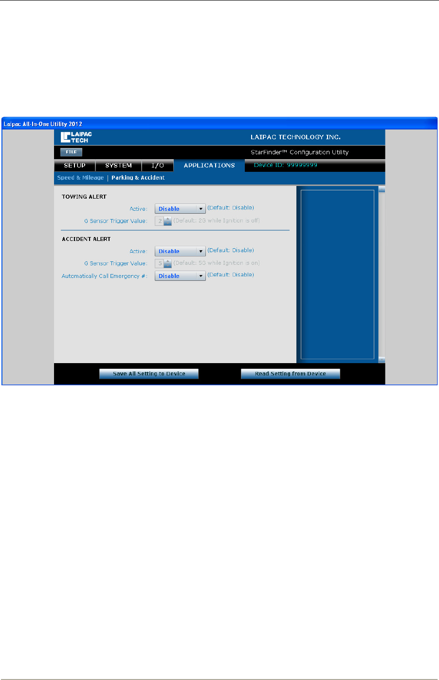Accident G-Sensor Trigger Value Yes Yes Yes