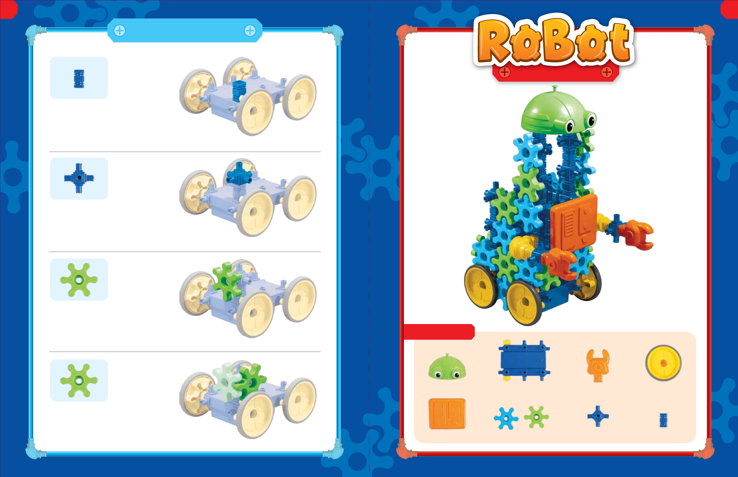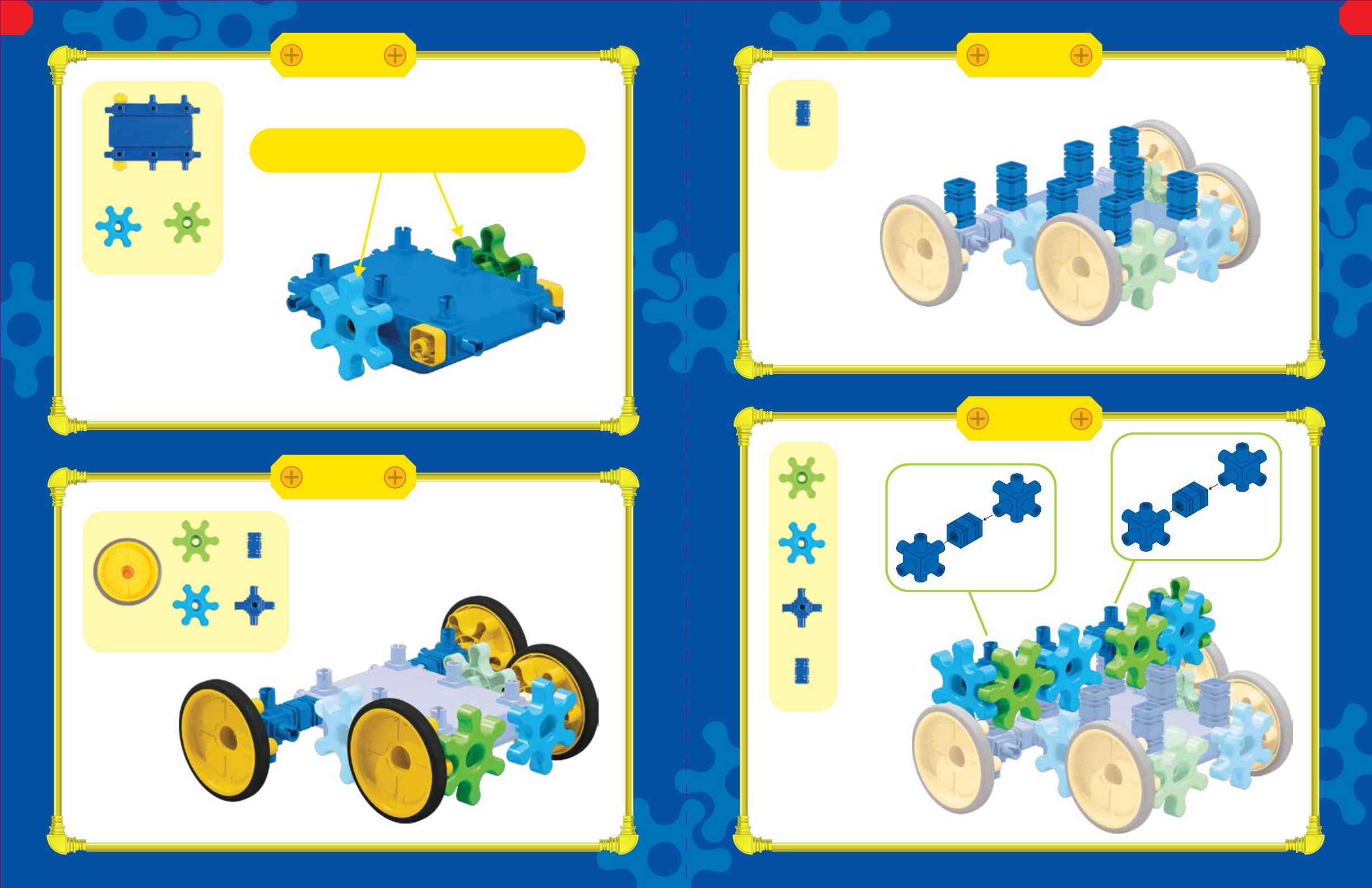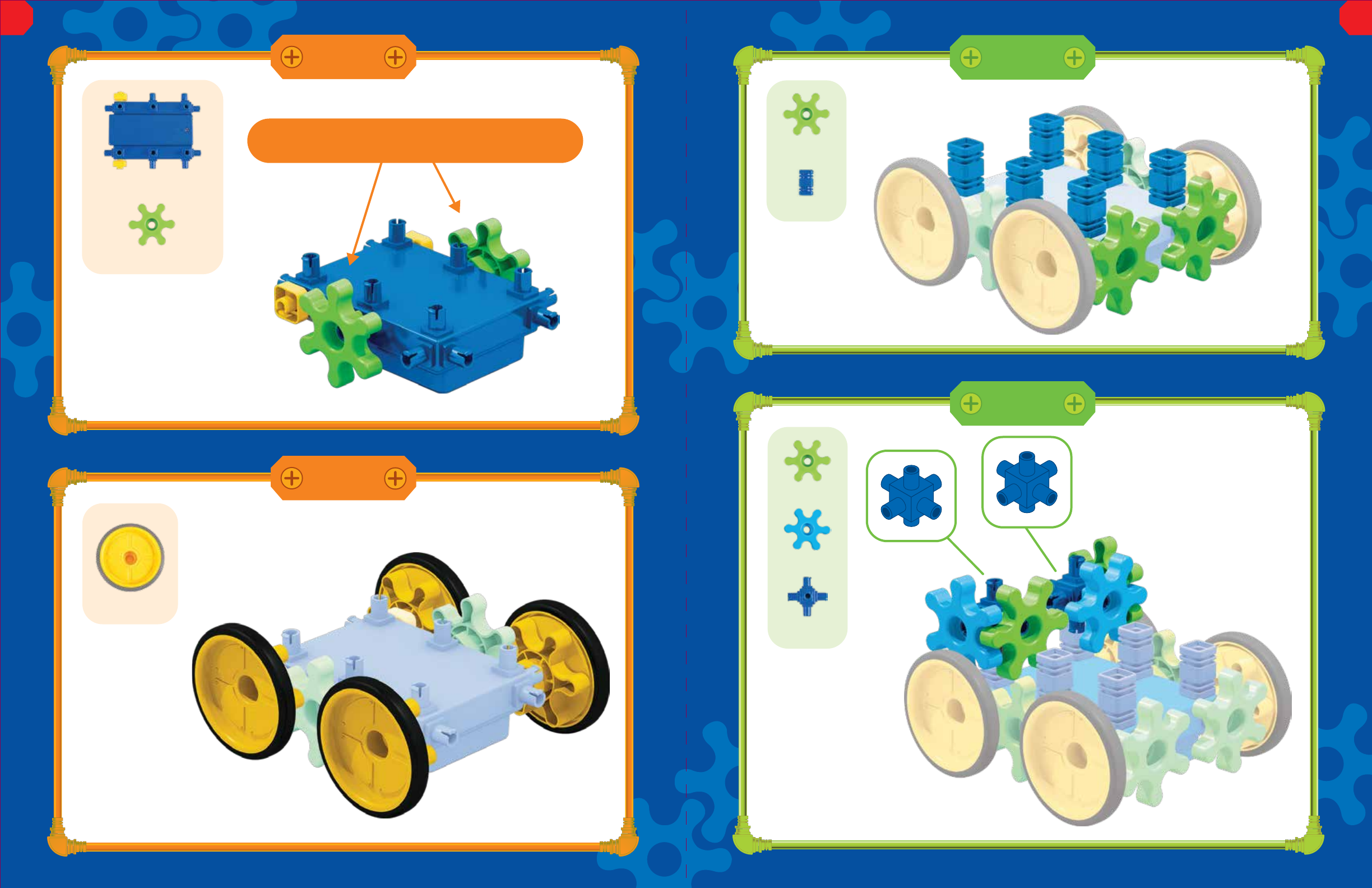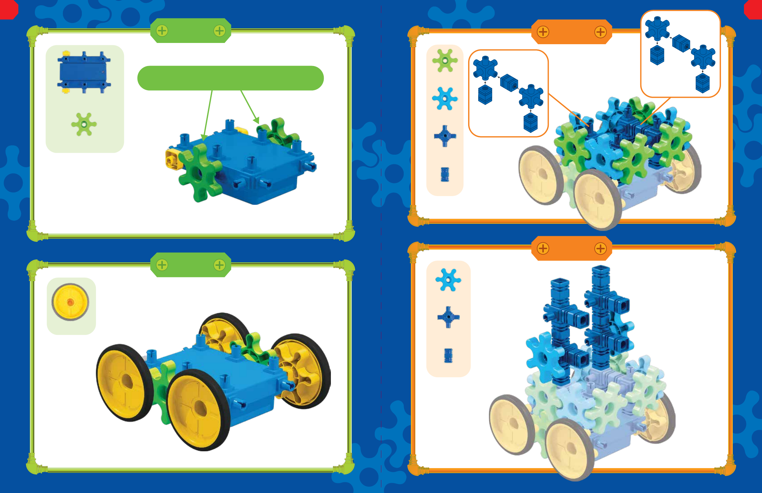 Add gears or risers to the pegs on the motorized base to build up or out —
