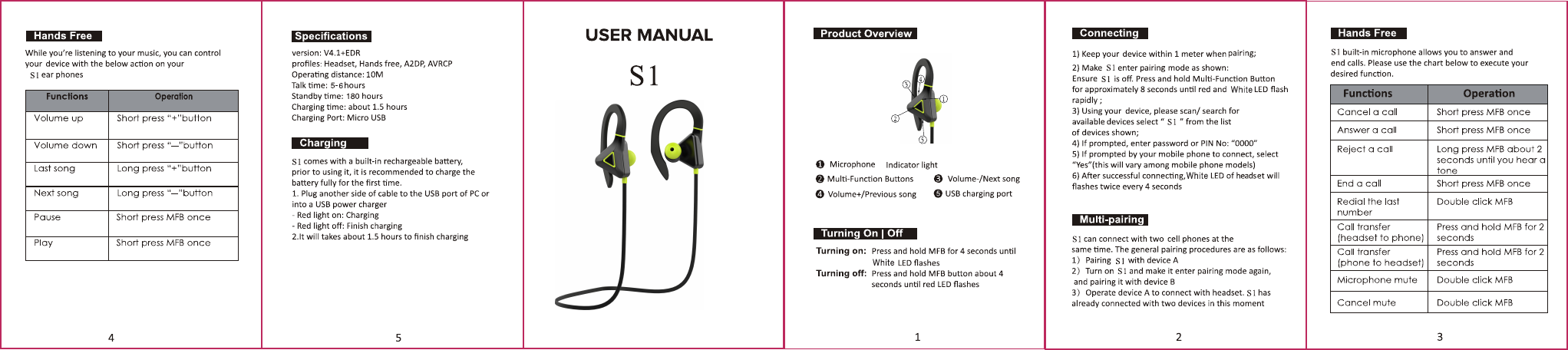 Lansiqi Technology S1 Bluetooth headphone User Manual S1sms