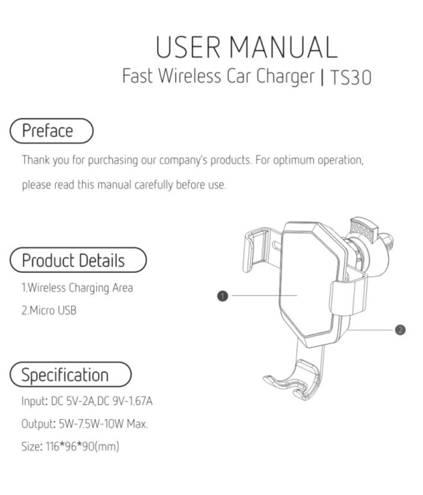 Lantaisi Technology TS30 Fast Wireless Car Charger User Manual