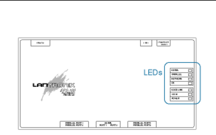 ports (EPS4-100). The back panel of the EPS has one 10/100BASE-T port, a Test/Reset button,