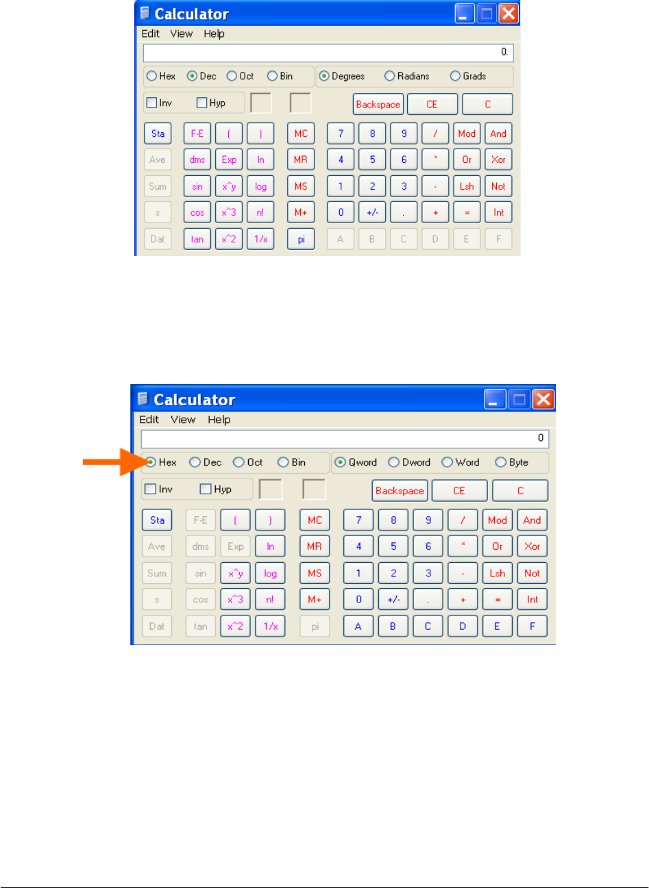 Figure B-3 Hexadecimal Values in the Scientific Calculator