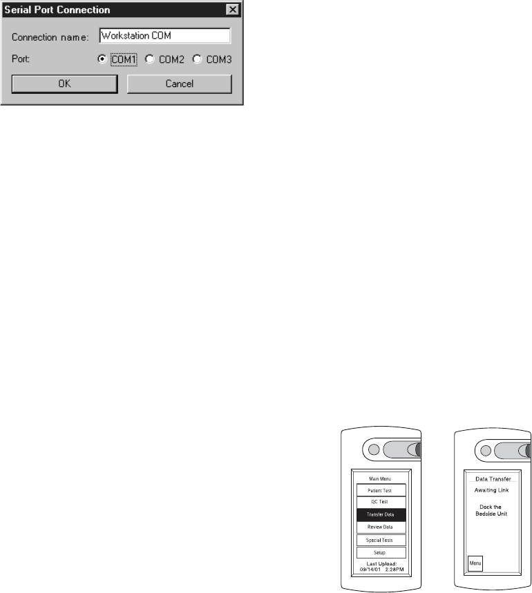 workstation serial port. If you are using a SureStepFlexx meter, you can transfer data
