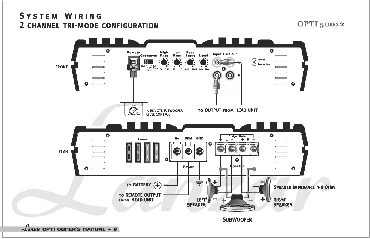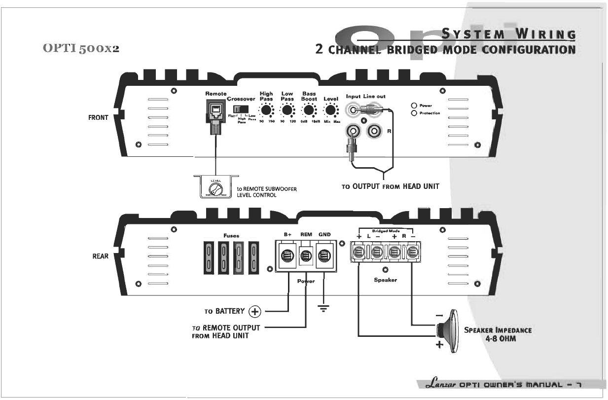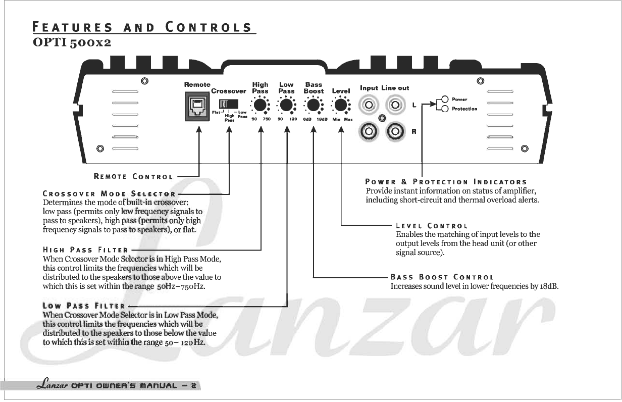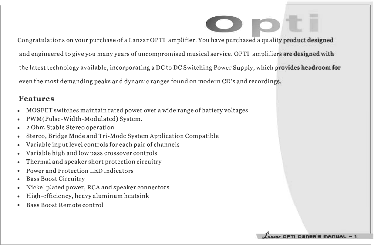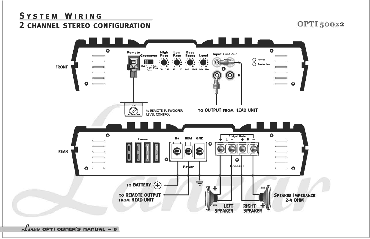 Lanzar OPTI Drive OPTI200X4 Amplifier User’s Manual OPTI500X2-200X4 Troubleshoot Lanzar OPTI Drive OPTI200X4 Amplifier |