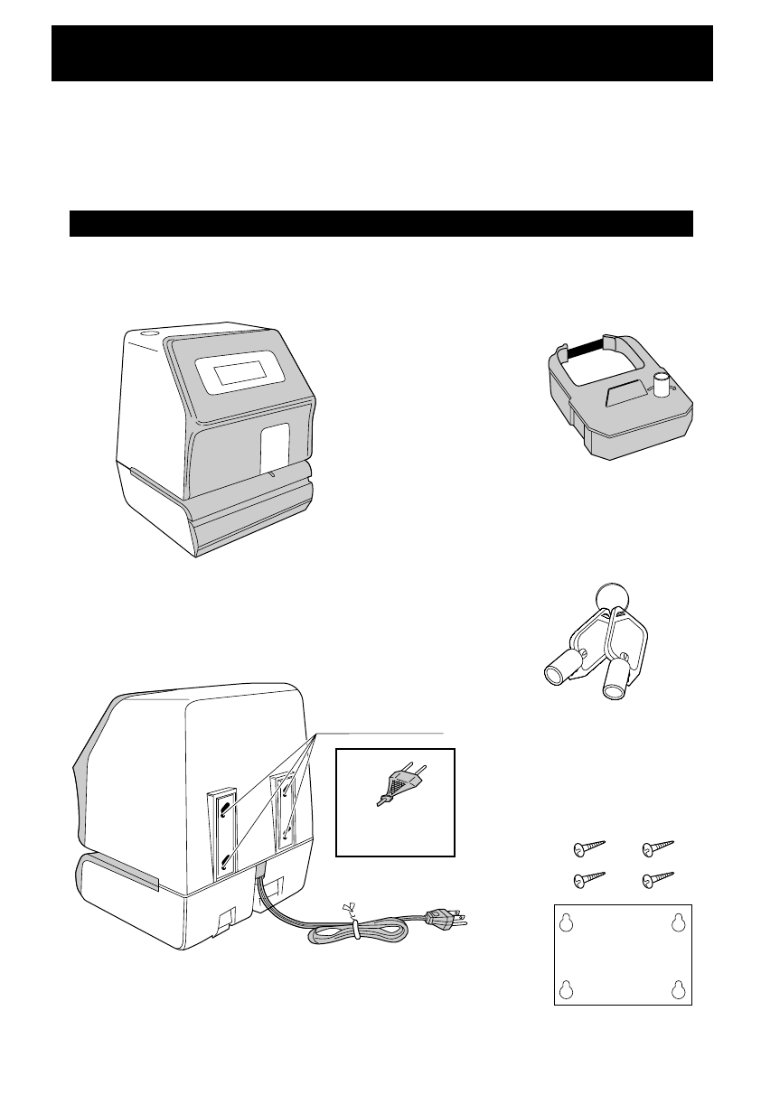 Unpack the time clock and check its contents to ensure that the time clock unit and all