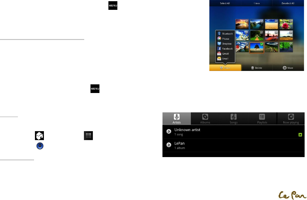 1. While viewing a picture in full screen, press Menu , then touch Share.