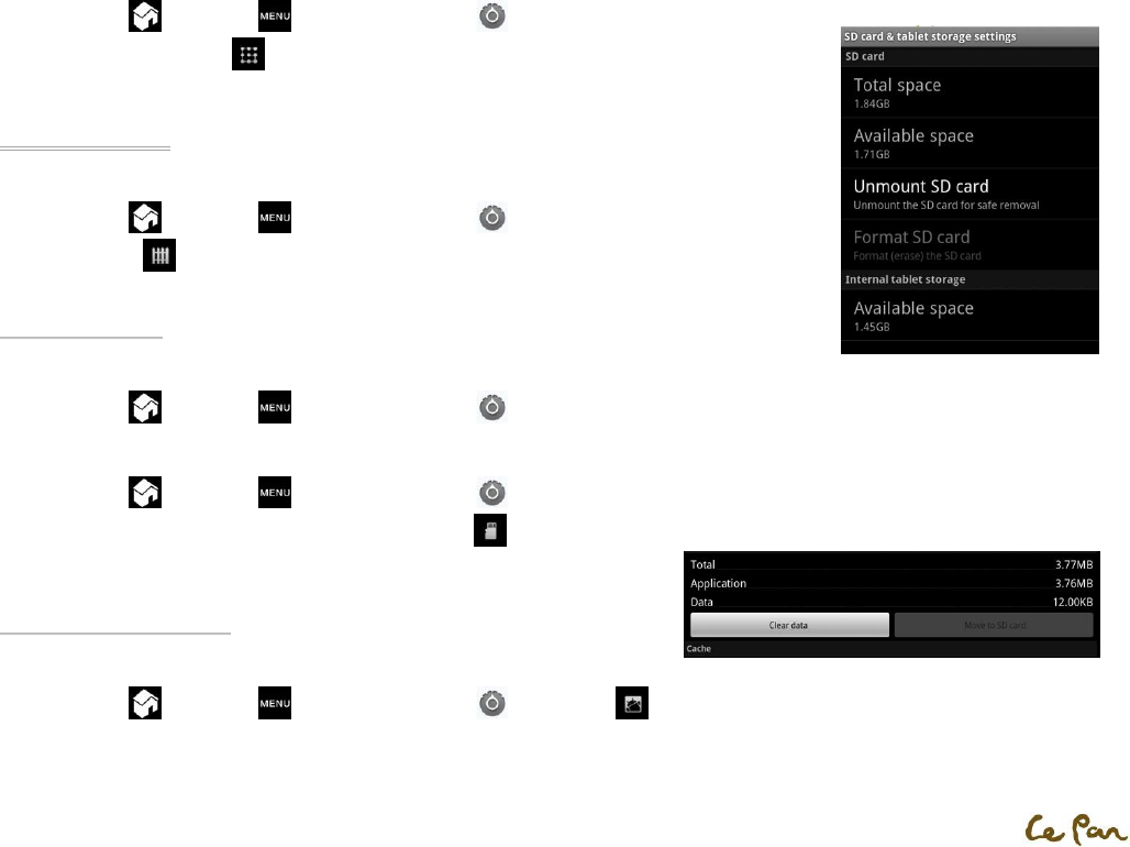 2. Go to MENU >Settings > SD Card & Tablet Storage > Unmout SD Card