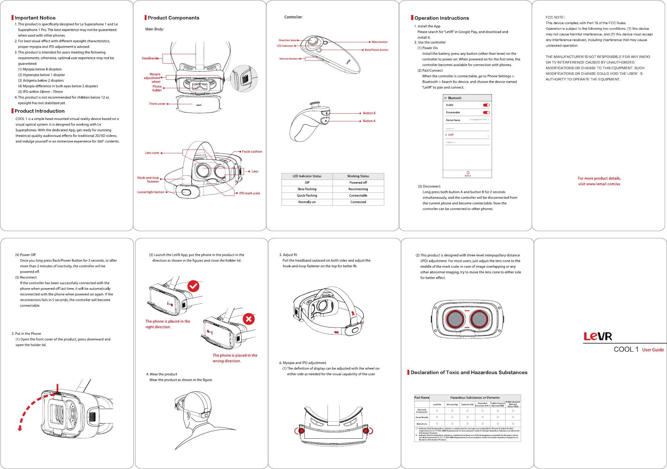 Le Shi Zhi Xin Electronic Technology (Tian jin) Limited LeVR COOL 1 Users Manual