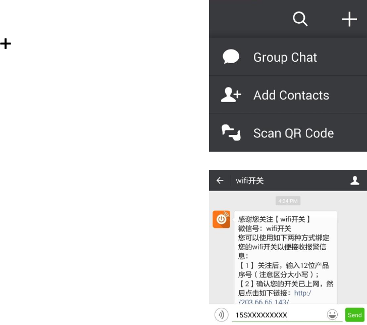 1. Start "WeChat", touch " " -> "Add Contacts" and "wifi开关