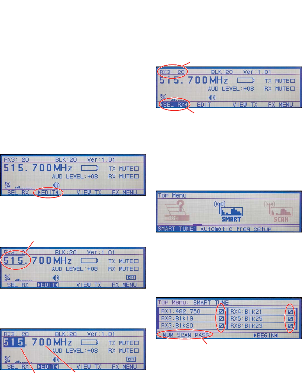 5) Identify and set operating frequencies on the receiver using Smart TuneTM (see page 21)