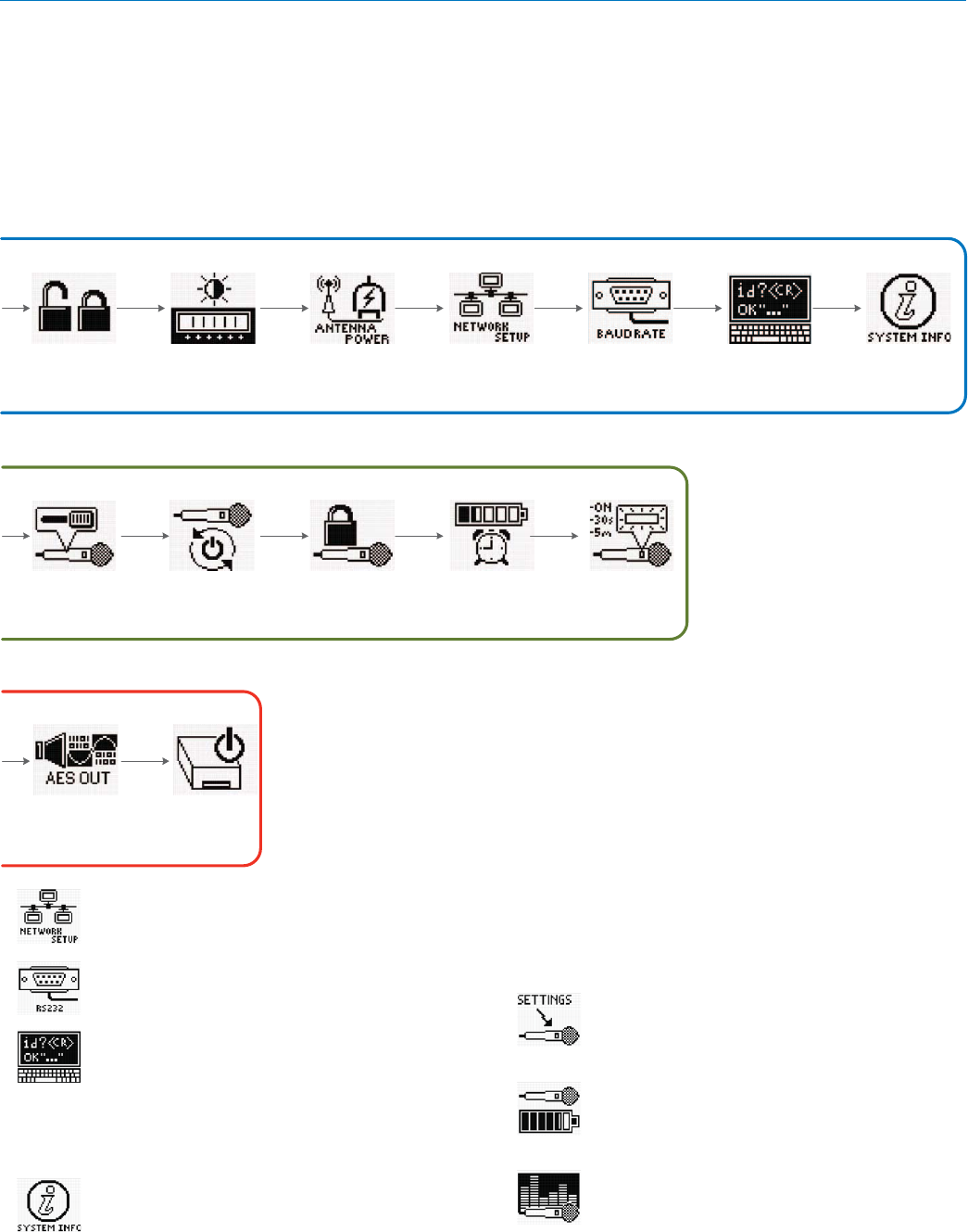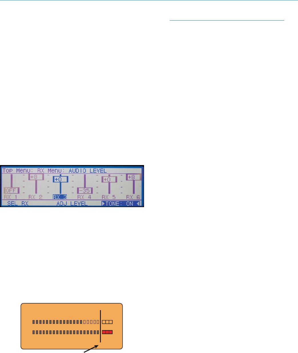 6) Attach microphones and adjust transmitter input gain (see page 22)
