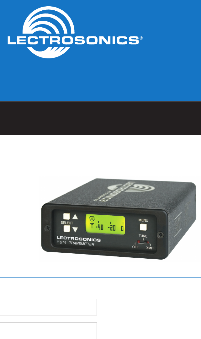Lectrosonics IFBT4E WIRELESS MICROPHONE TRANSMITTER User Manual USERS MANUAL