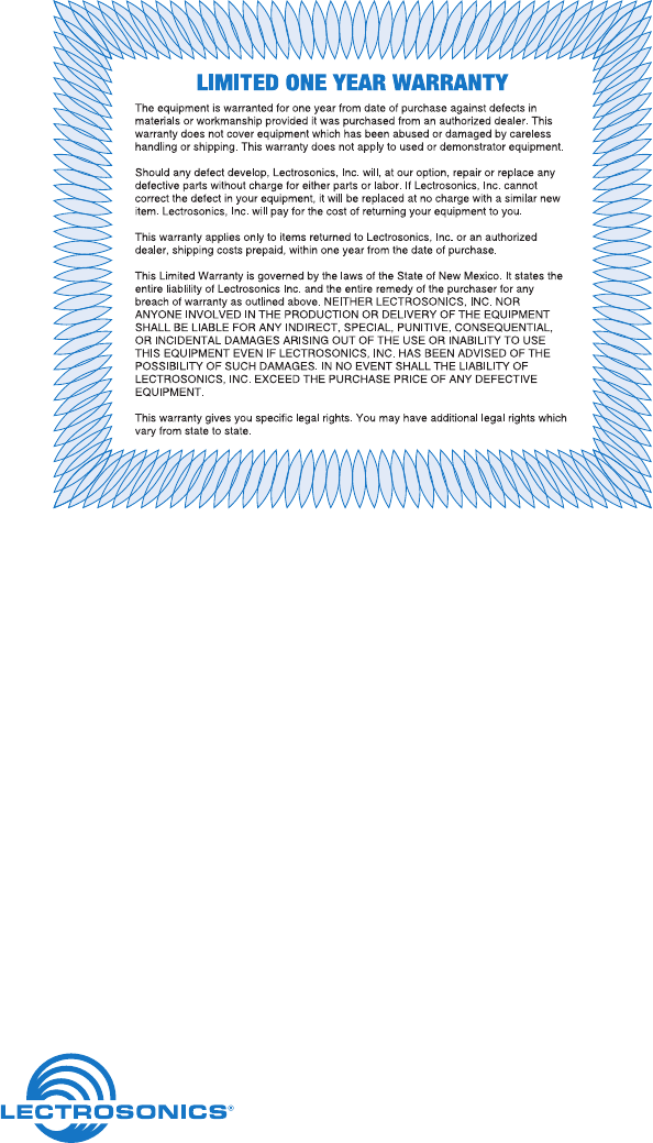 581 Laser Road NE • Rio Rancho, NM 87124 USA • www.lectrosonics.com