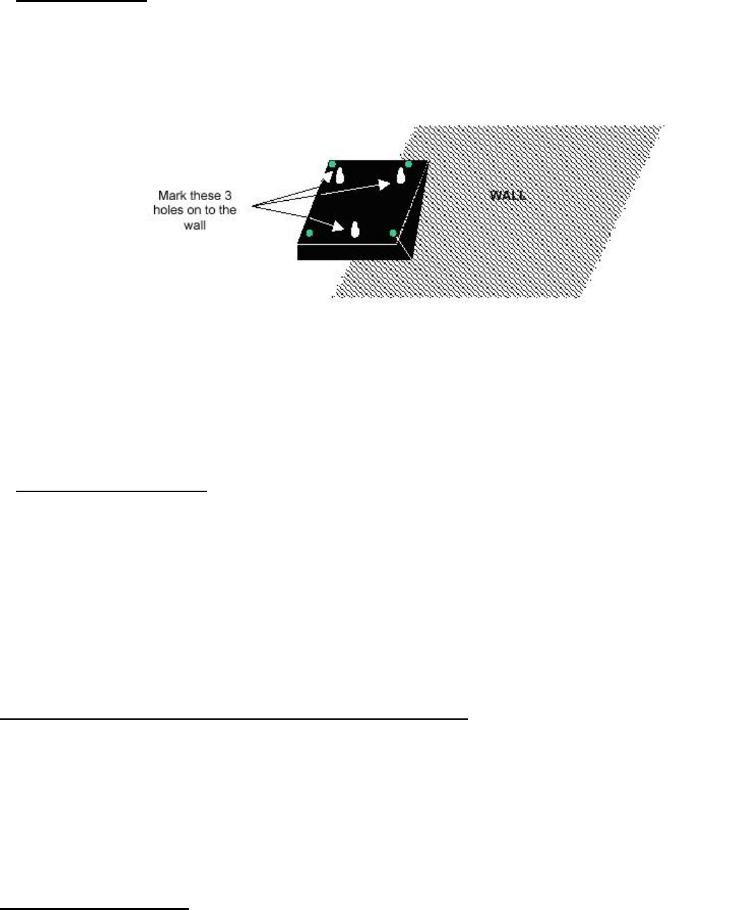 z Drill a hole on the marked position. Install the 3 mounting screws (and use anchors where