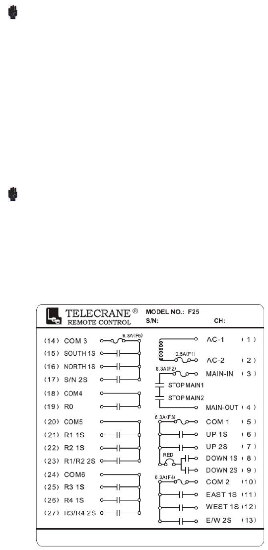 4. Connect cables to the control circuit of crane according to the receiver’s
