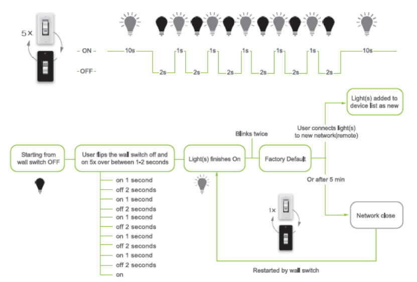 wall switch.Factory default by remote controller is same as un-pairing Bulb(s),while