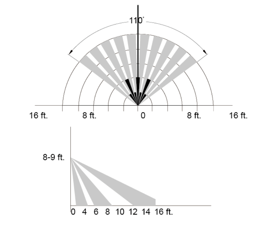 Step 5: If mounted at a height of 8-9 ft. above the floor, the detection range will be approximately 16 ft.