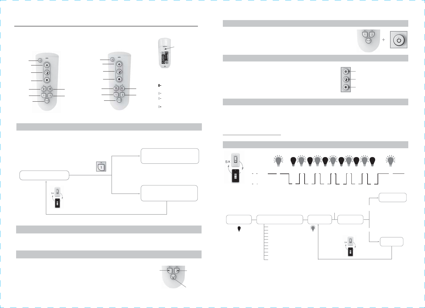 Press group all key “1-2” + red program button for 3 seconds that you want the light(s) to unpair. Remote control gets close to light