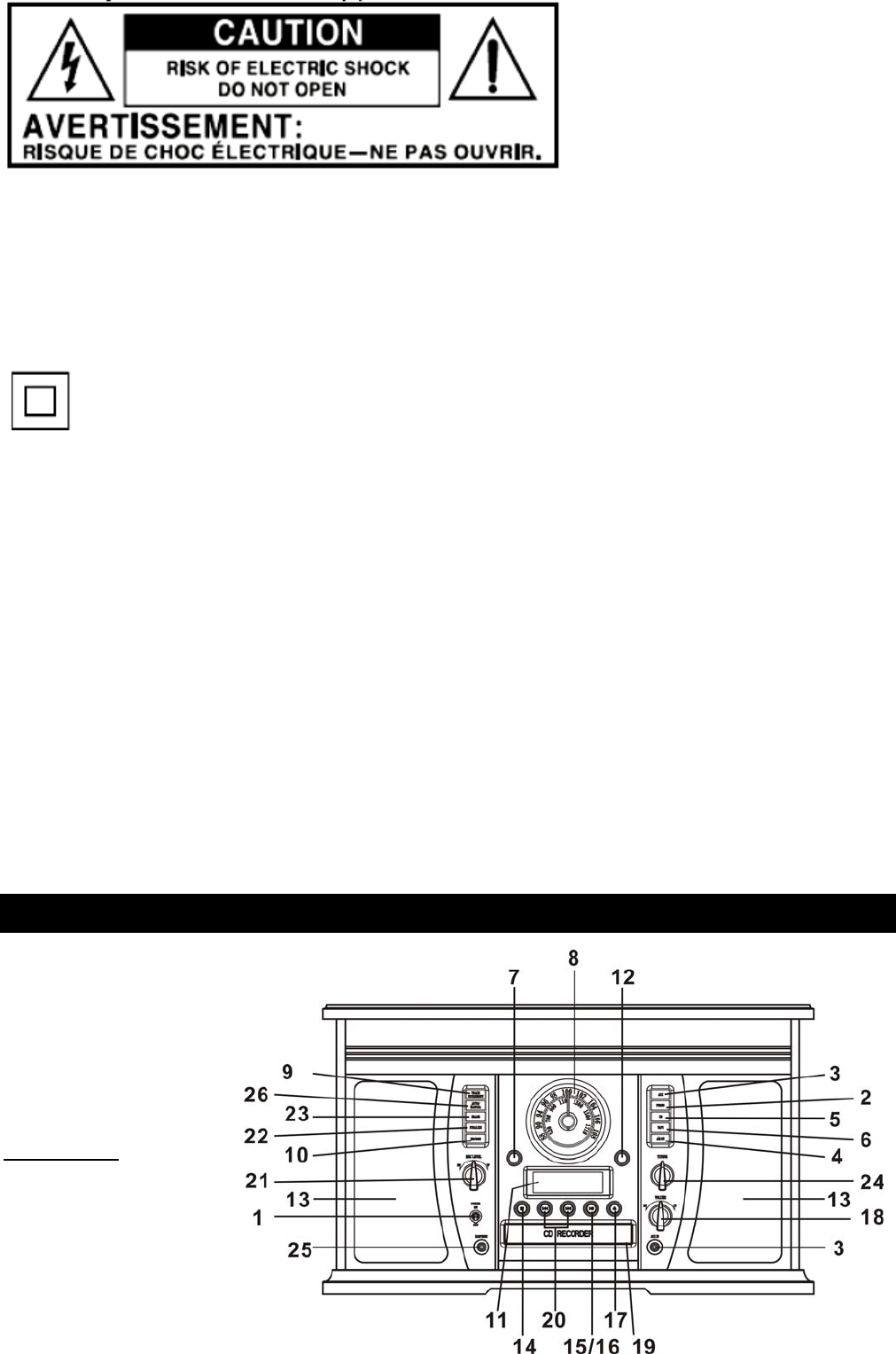 -Warning: To reduce the risk of electric shock, do not remove cover (or back) as there are no