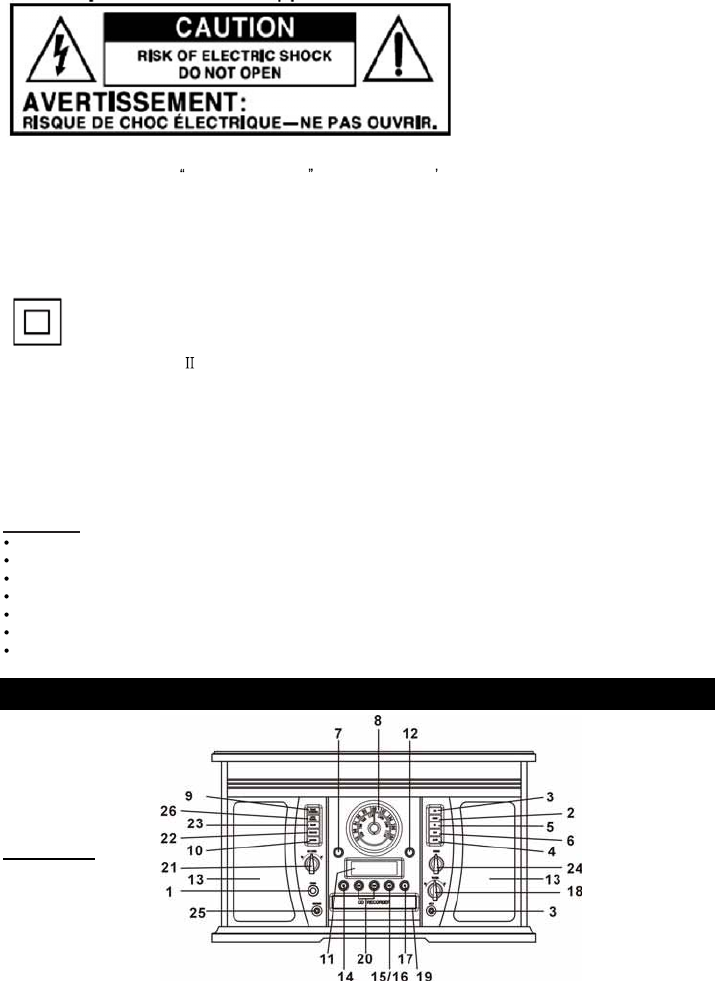 -Warning: To reduce the risk of electric shock, do not remove cover (or back) as there are no