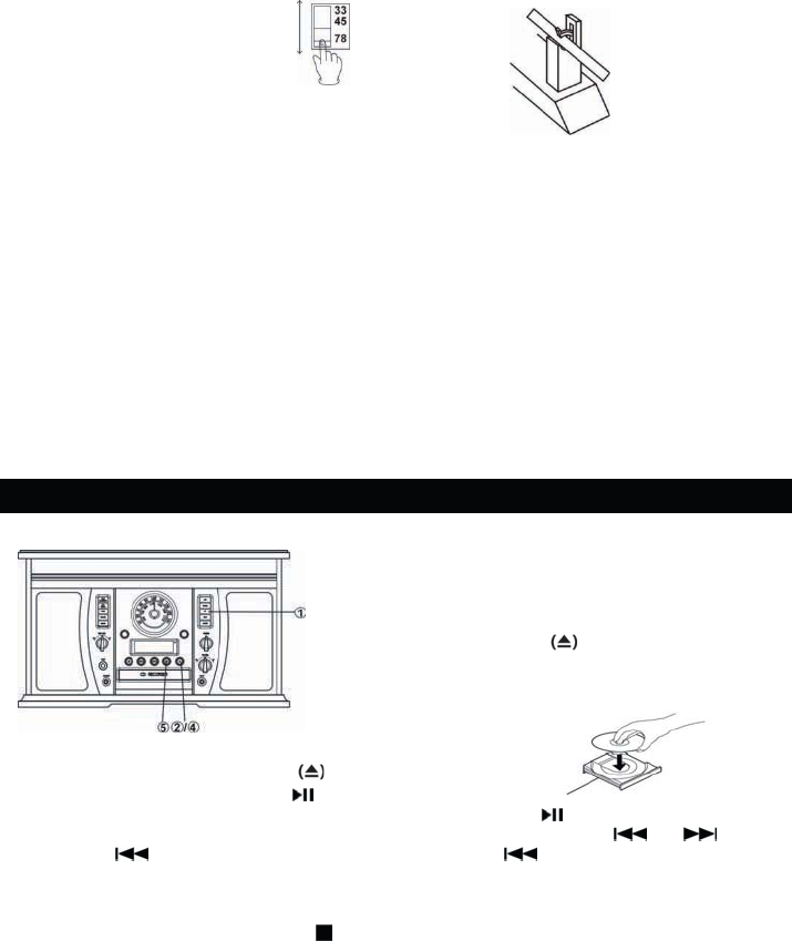 2. Press to play a vinyl record.
