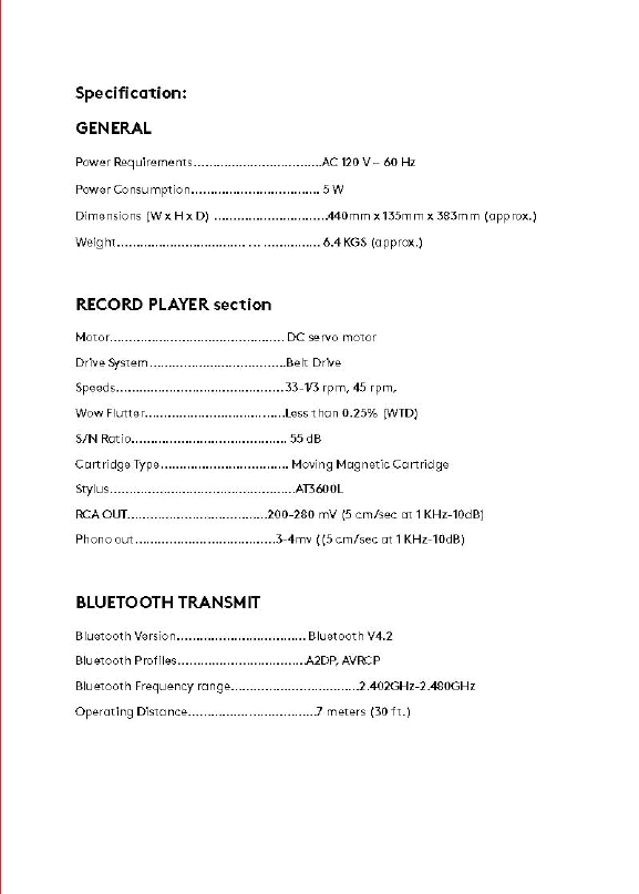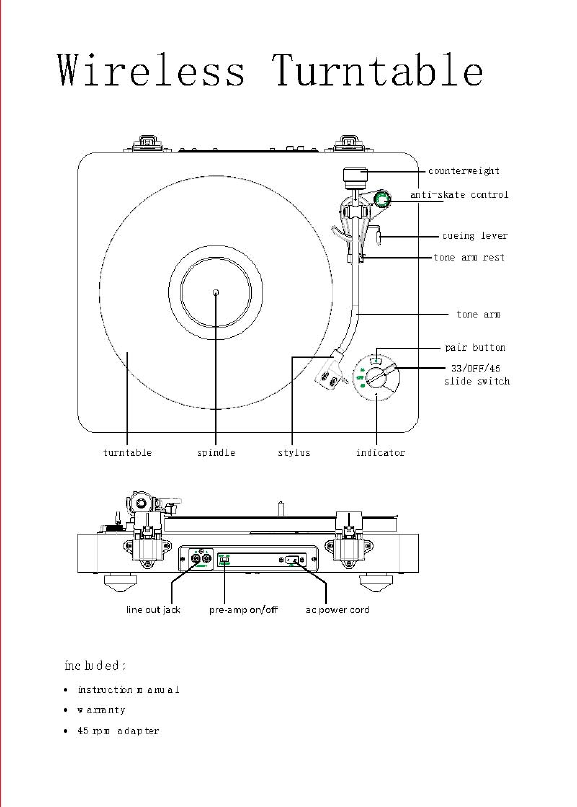 Leetac Electronics Technology LEETACEE490 Wireless Turntable User Manual