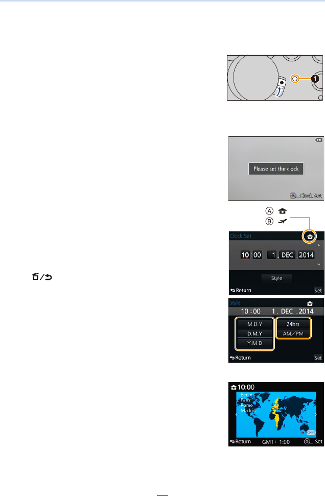 The screen illustration examples in these instructions assume that [Style] in [Clock Set]